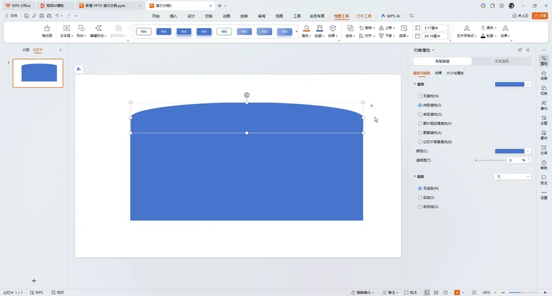 ①首先插入一个矩形,再插入一个椭圆,都设置无线条格式,将椭圆移动到矩形的上方。