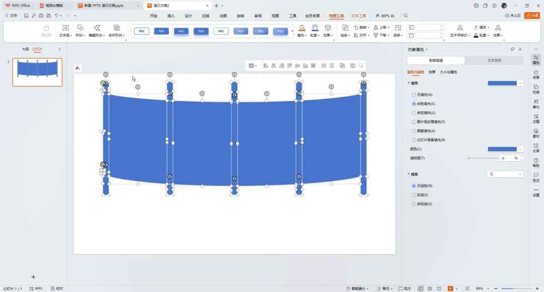 ②删除多余形状,复制一份备用,选中第一个形状。