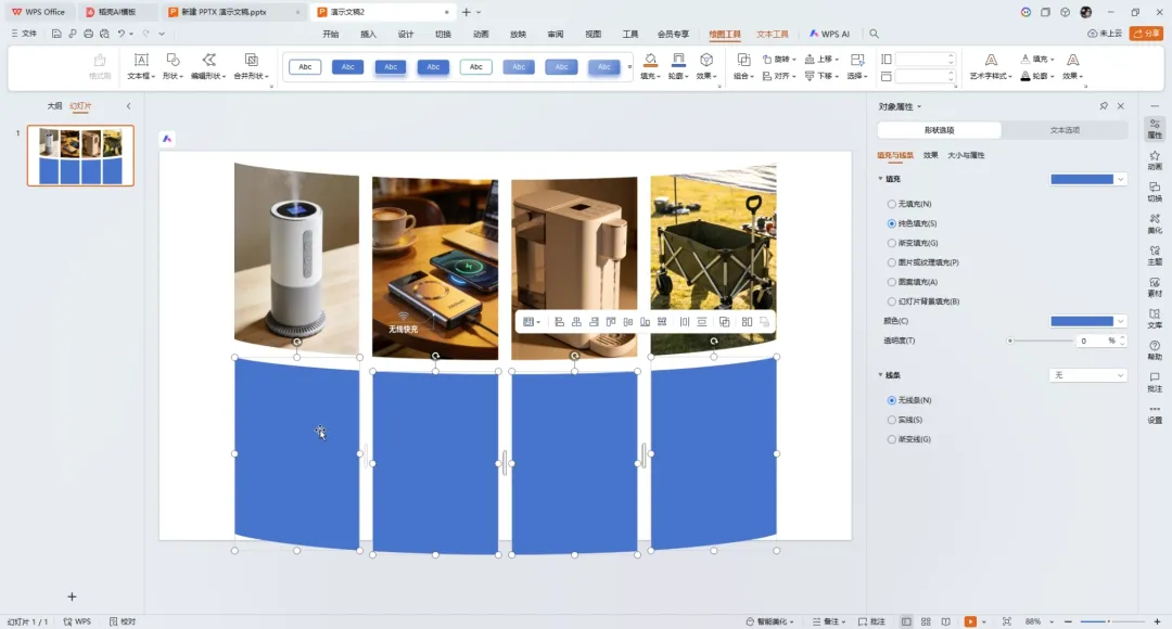 ③选中第一个形状,右键选择填充图片,以此类推,给其他三个也执行这个操作。