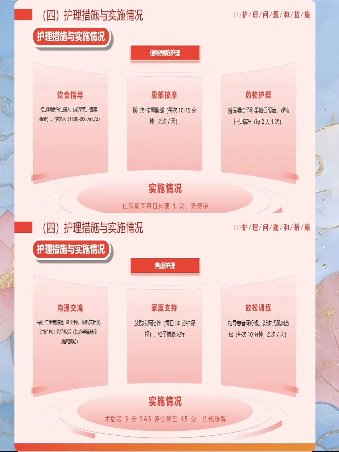 院前急救与转运护理决定预后转归。对于院外发病的患者,急救护士要指导患者立即停止一切活动,就地平卧休息,保持镇静,避免紧张焦虑。立即给予吸氧,流量4-6L/min,维持血氧饱和度在94%以上。迅速建立静脉通路,通常选择左上肢或右上肢,避开可能进行桡动脉穿刺的部位。采集静脉血标本,检测心肌损伤标志物、血常规、凝血功能、生化指标等。若无禁忌证,立即给予阿司匹林300mg嚼服,氯吡格雷300-600mg顿服,必要时给予他汀类药物。持续心电监护,监测生命体征和心律变化,发现恶性心律失常及时处理。转运途中与接收医院保持实时通讯,传递患者信息,提前启动导管室准备,实现"上车即入院"的无缝衔接。