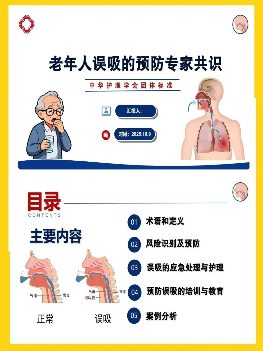 🍉名称:老年人误吸的预防专家共识ppt模板课件模板