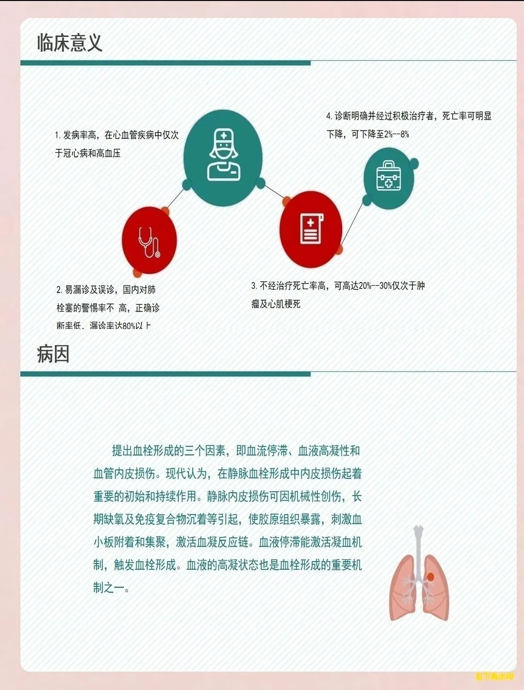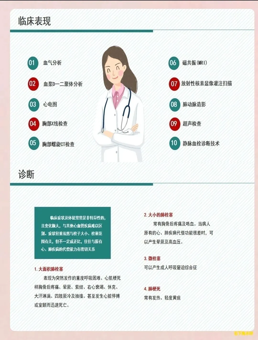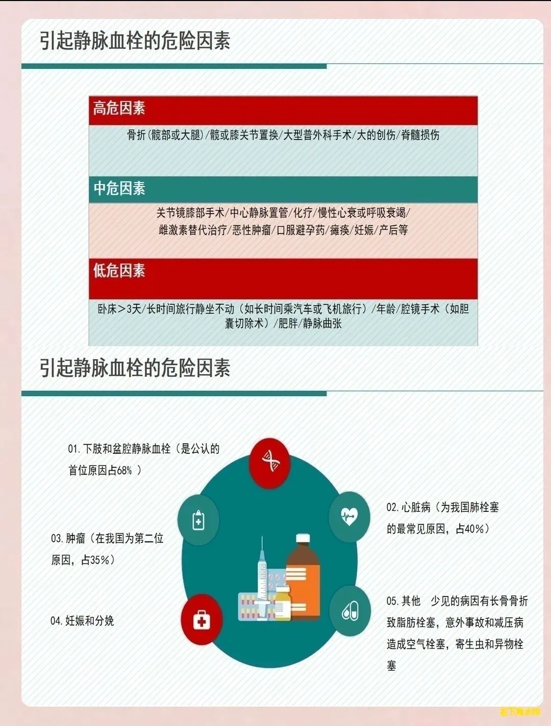 复发预防:指导患者遵医嘱坚持抗凝治疗,不可擅自停药或减量。告知患者复发的危险因素,如长期卧床、手术、肿瘤、妊娠等,在危险因素存在时需采取预防措施。教会患者识别复发的征象,如突发呼吸困难、胸痛、咯血等,出现症状及时就医。