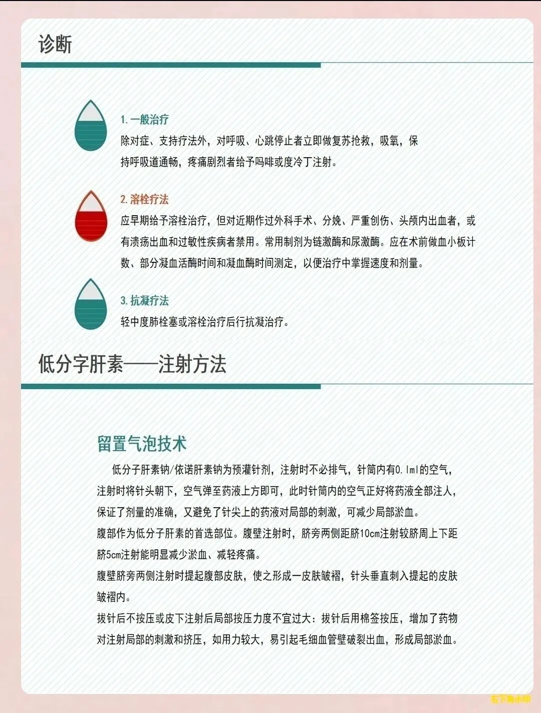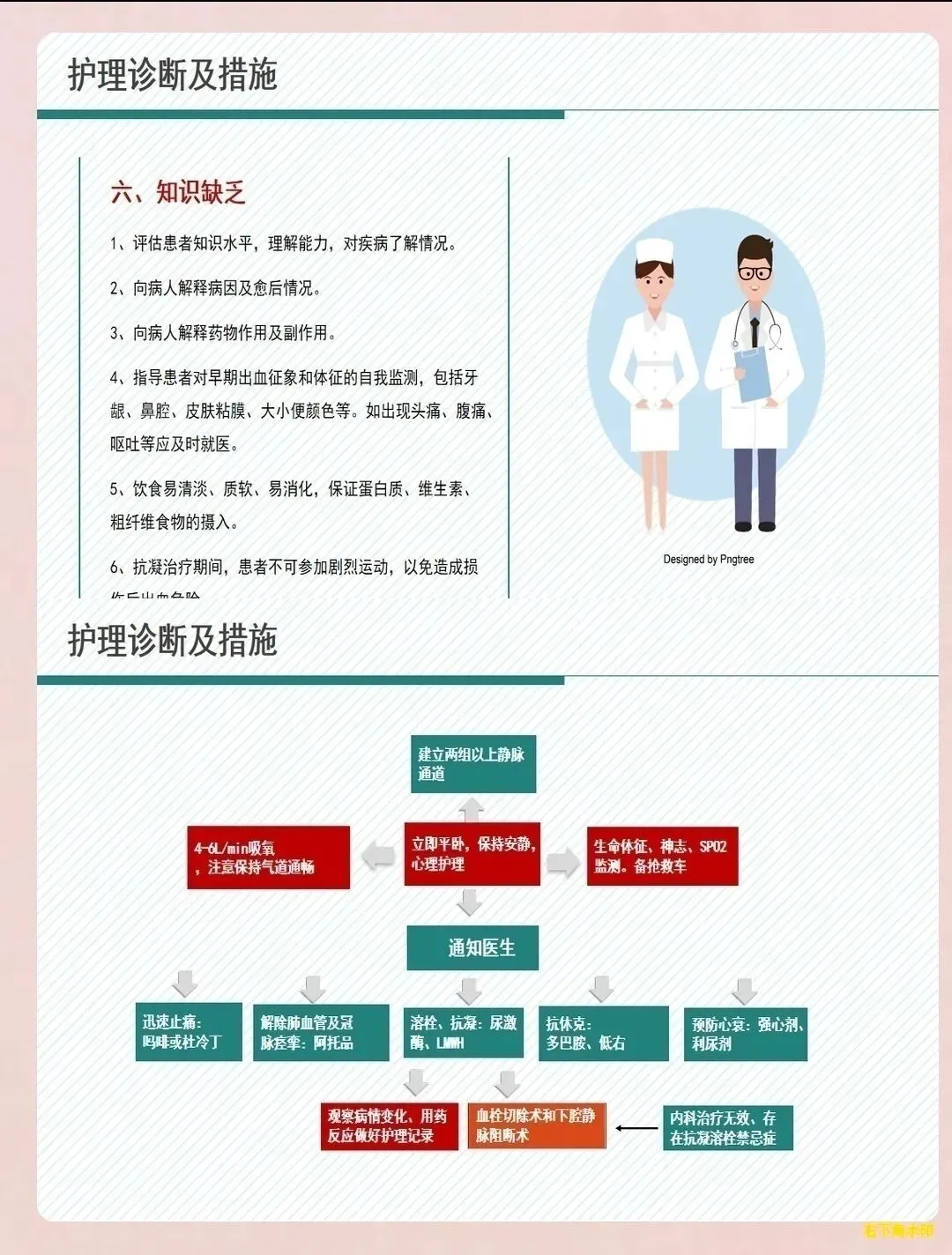 抗凝溶栓护理:抗凝治疗是肺栓塞的基础治疗。遵医嘱给予低分子肝素、华法林等抗凝药物,严格掌握用药剂量和时间,监测凝血功能指标,特别是国际标准化比值(INR),使其维持在2.0-3.0之间。对于高危患者,配合医生进行溶栓治疗,溶栓期间密切监测生命体征、意识状态及出血征象,做好抢救准备。