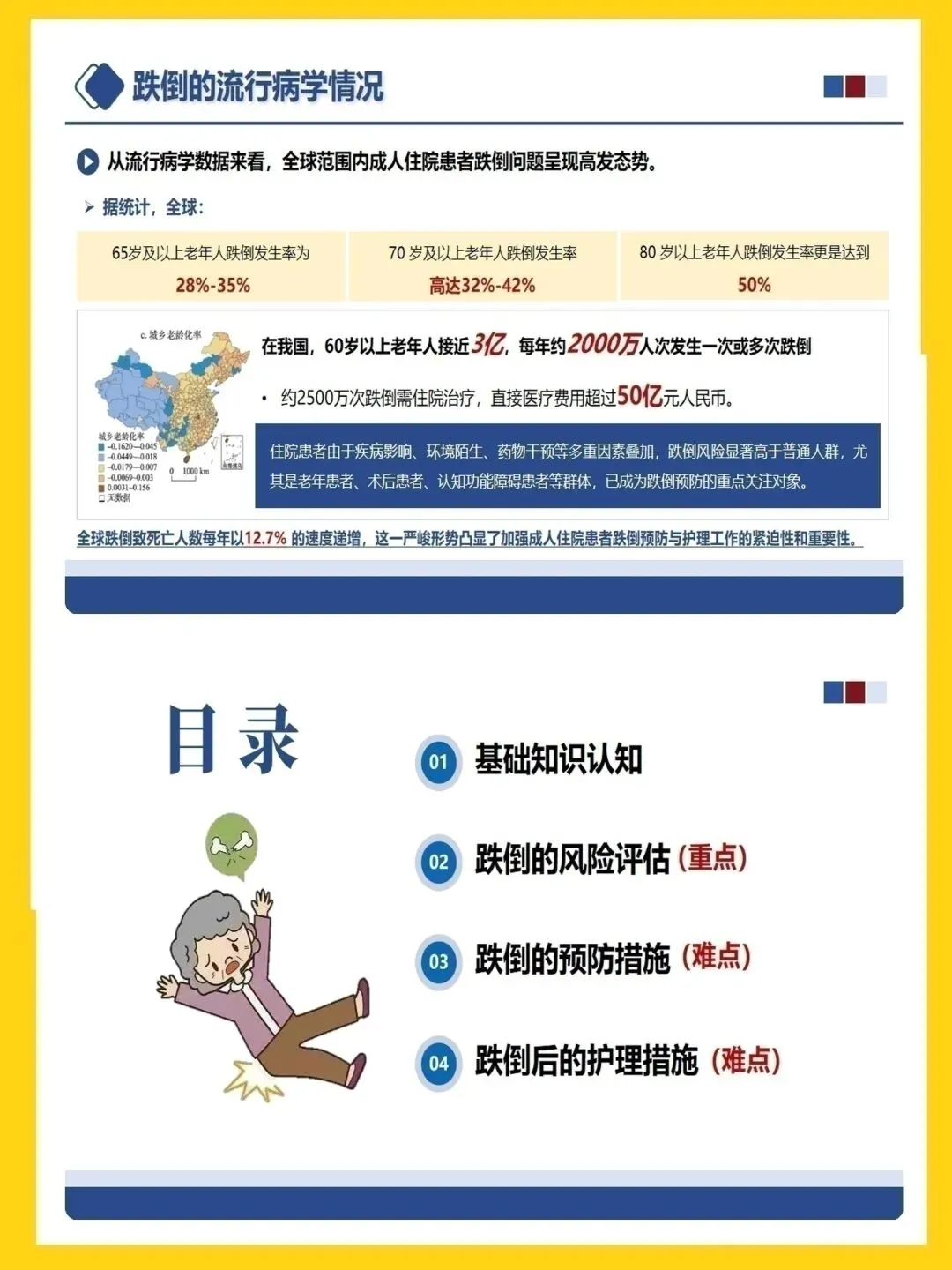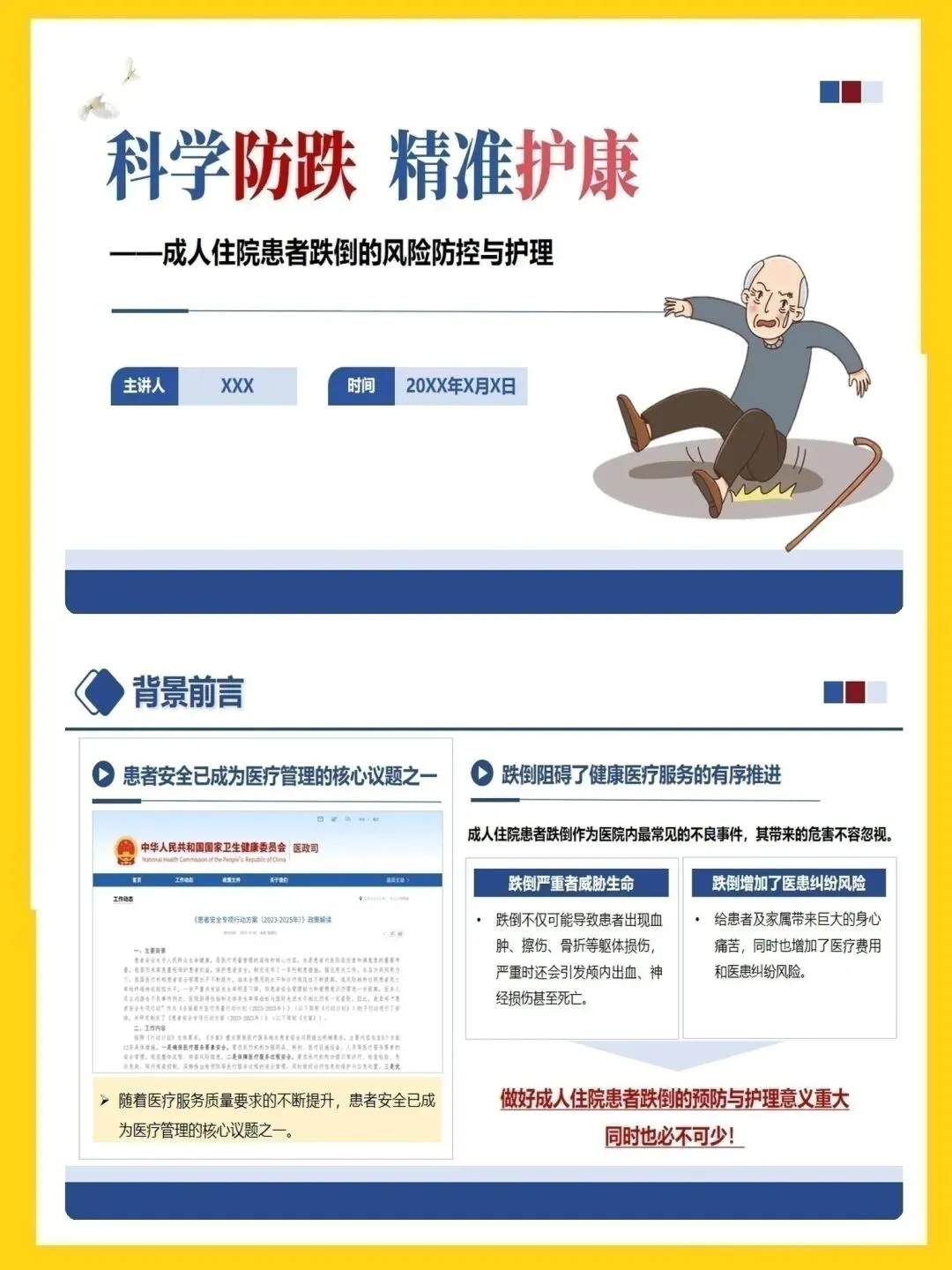 【护理ppt模板】成人住院患者跌倒的风险防控与护理ppt模板带演讲稿