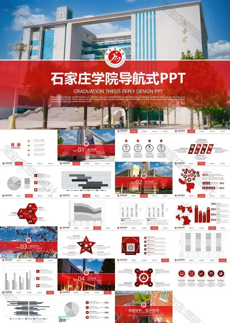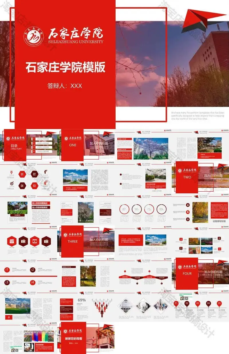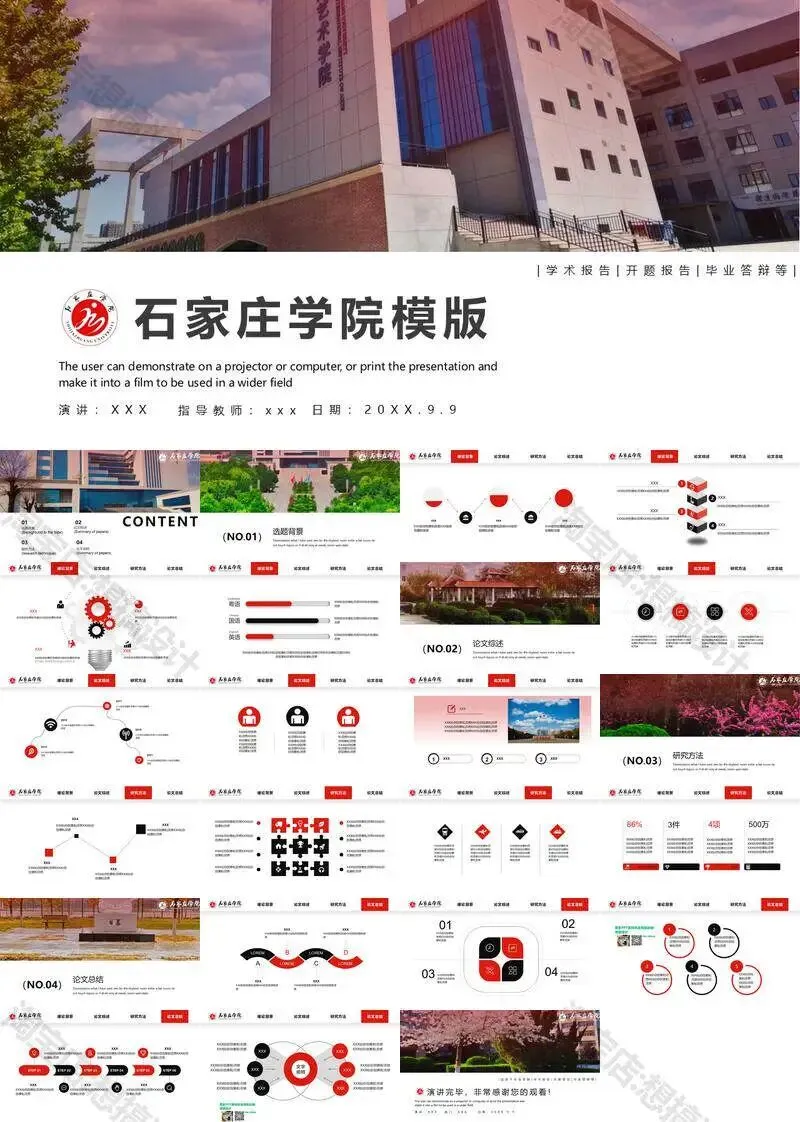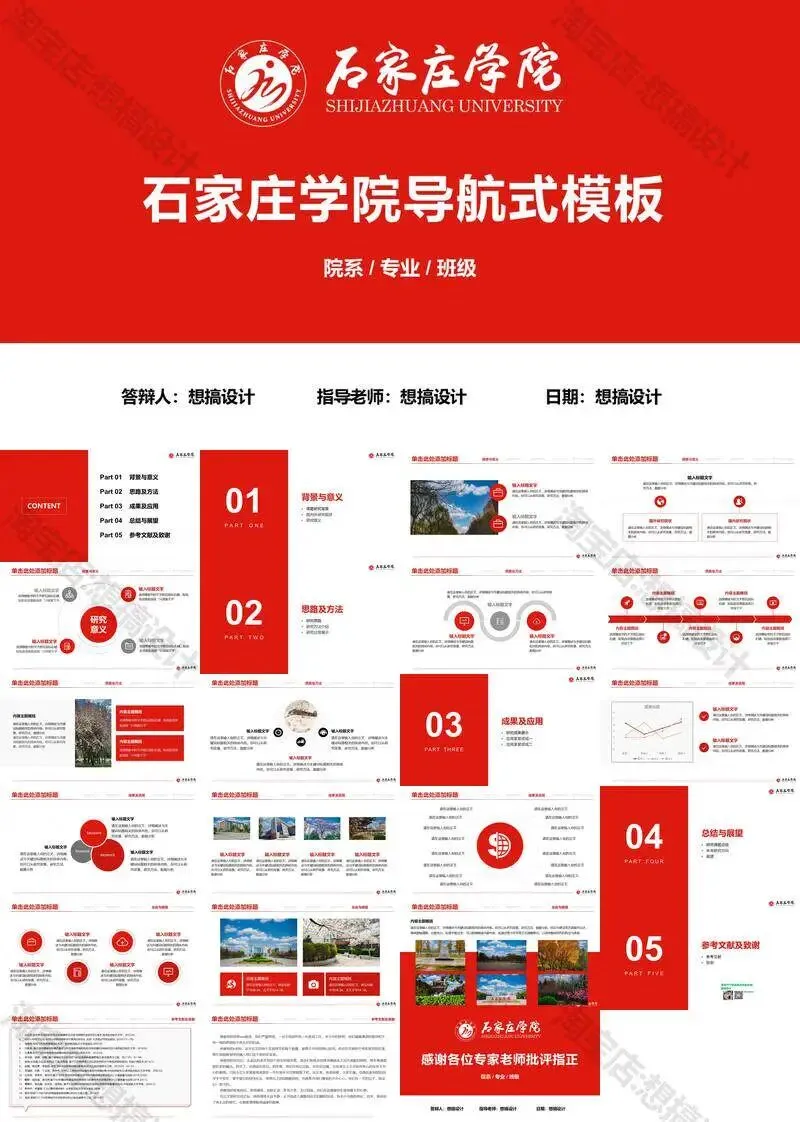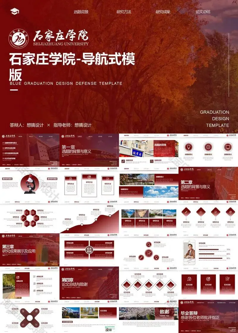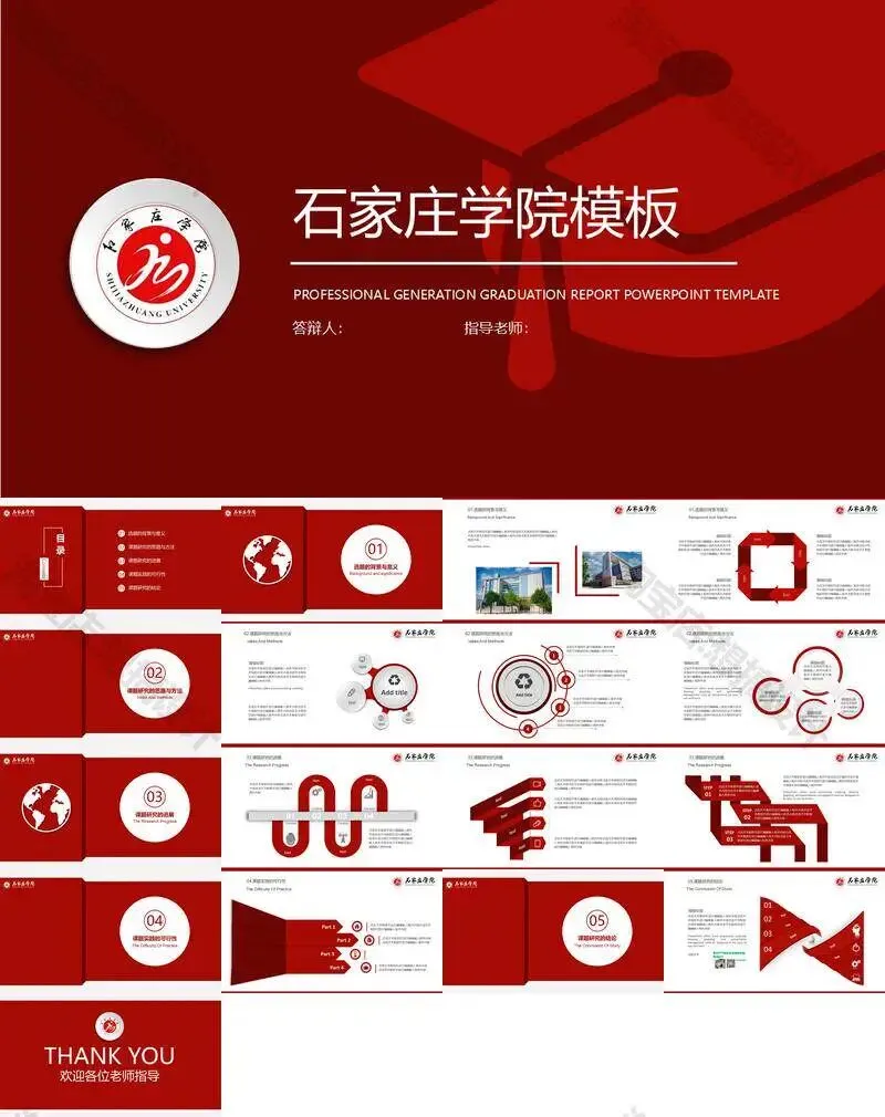 石家庄学院毕业答辩PPT模板汇报幻灯片课件总结作品