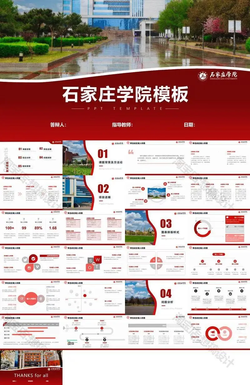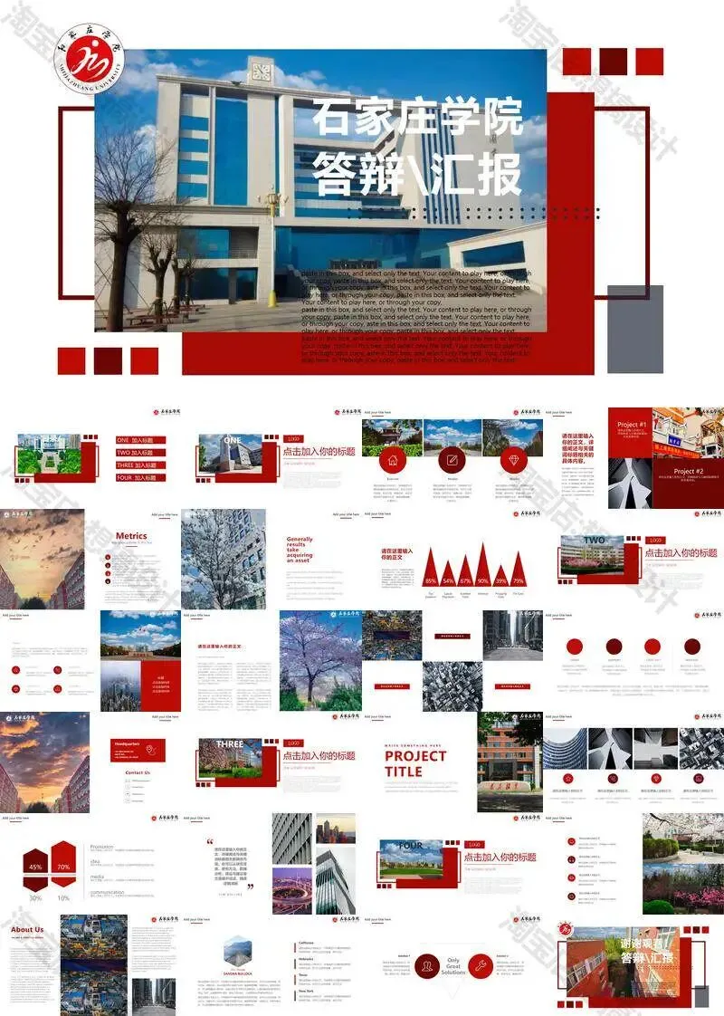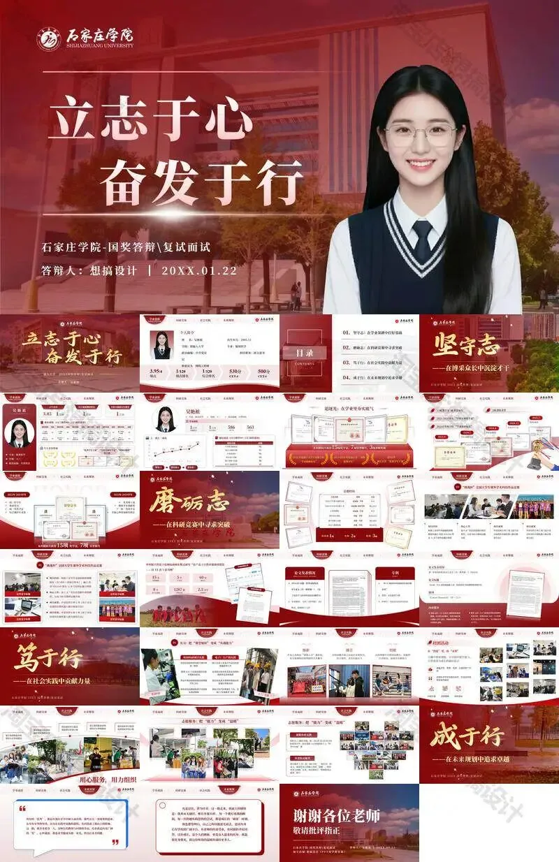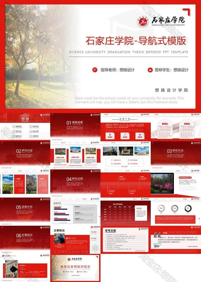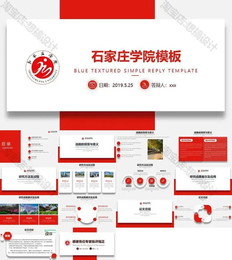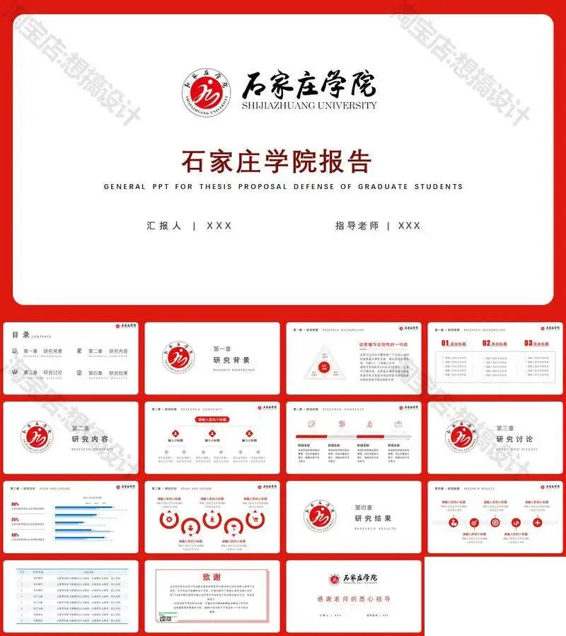 石家庄学院毕业答辩PPT模板汇报幻灯片课件总结作品