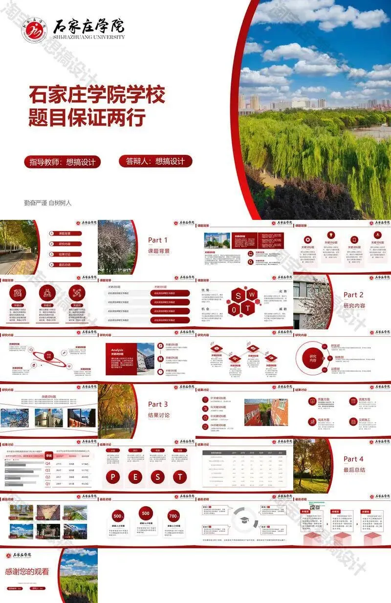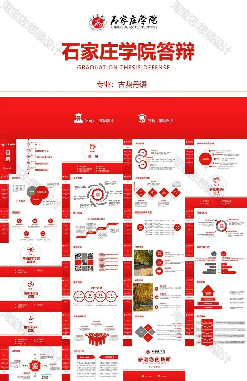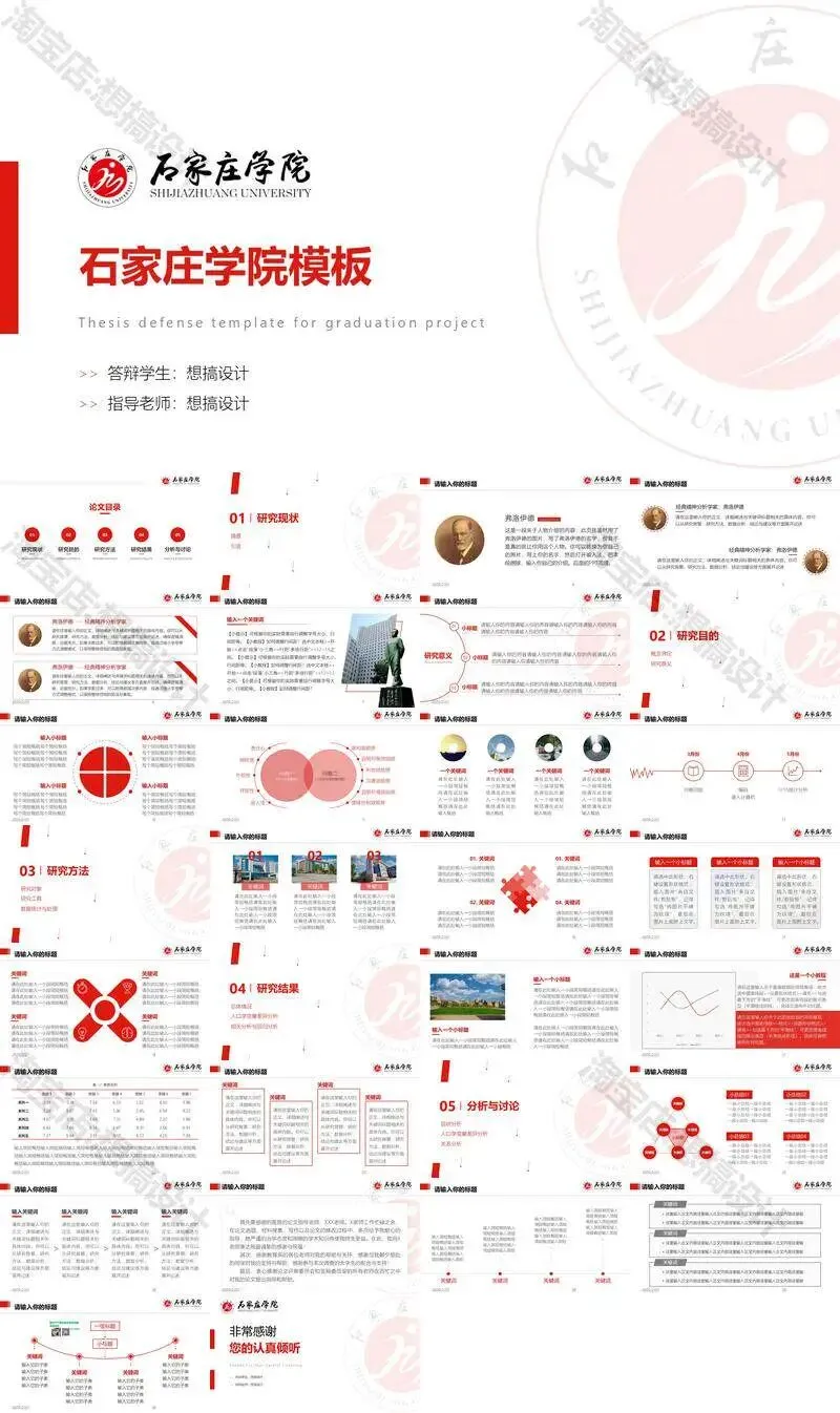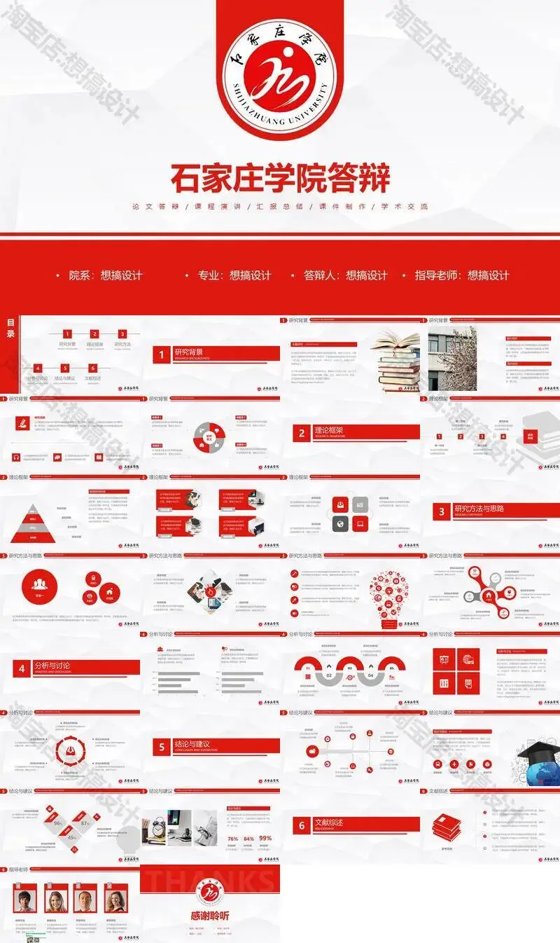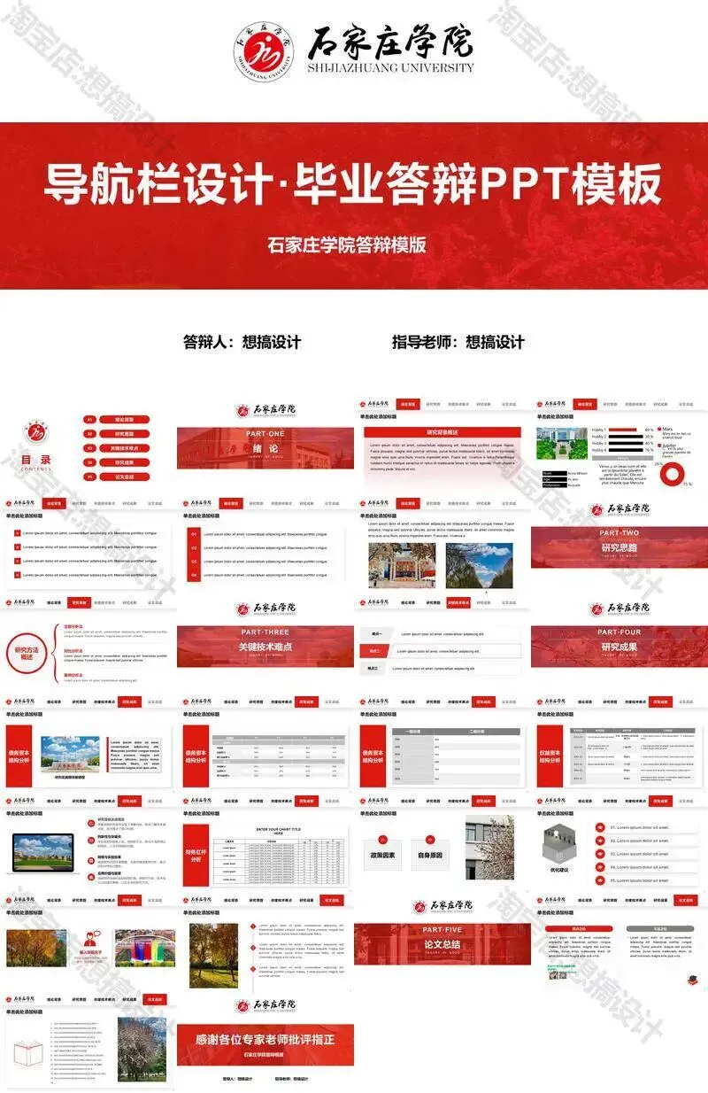石家庄学院毕业答辩PPT模板汇报幻灯片课件总结作品