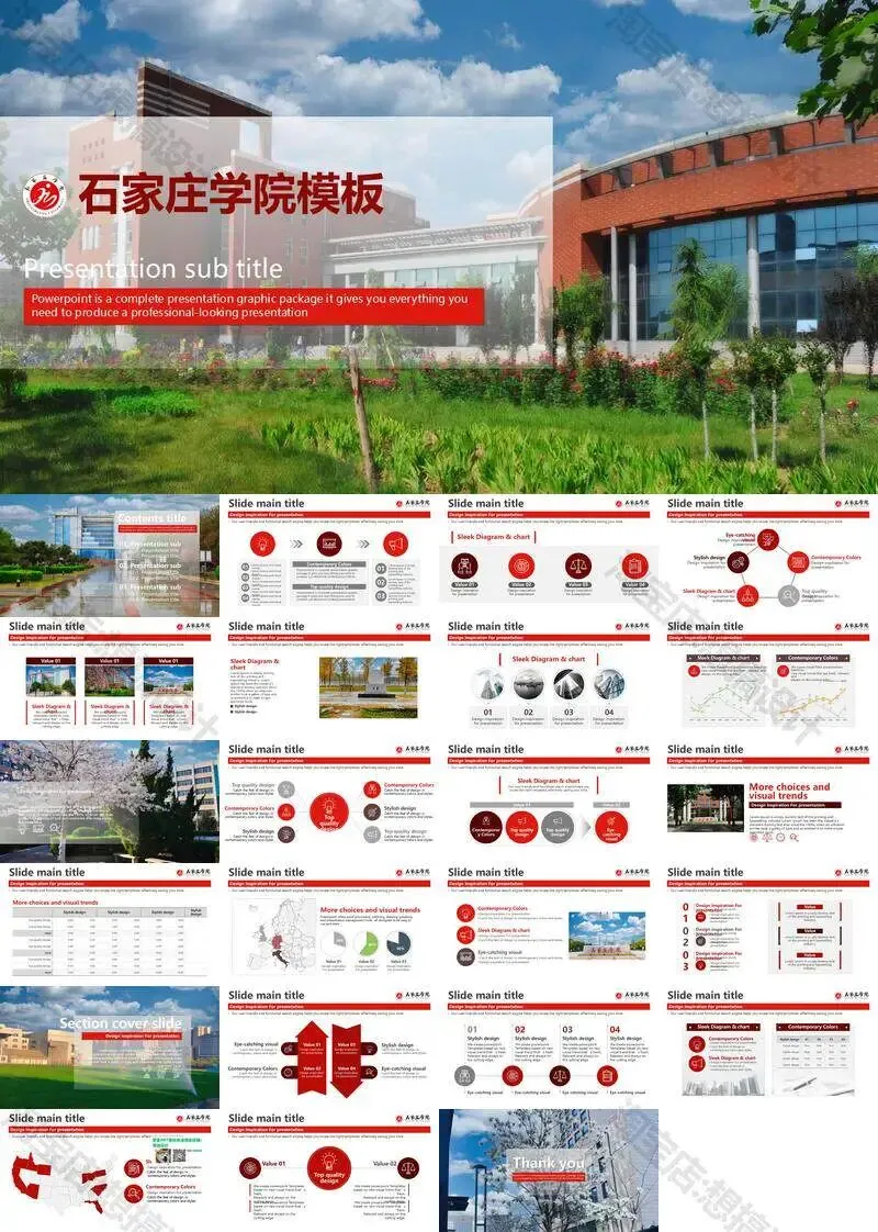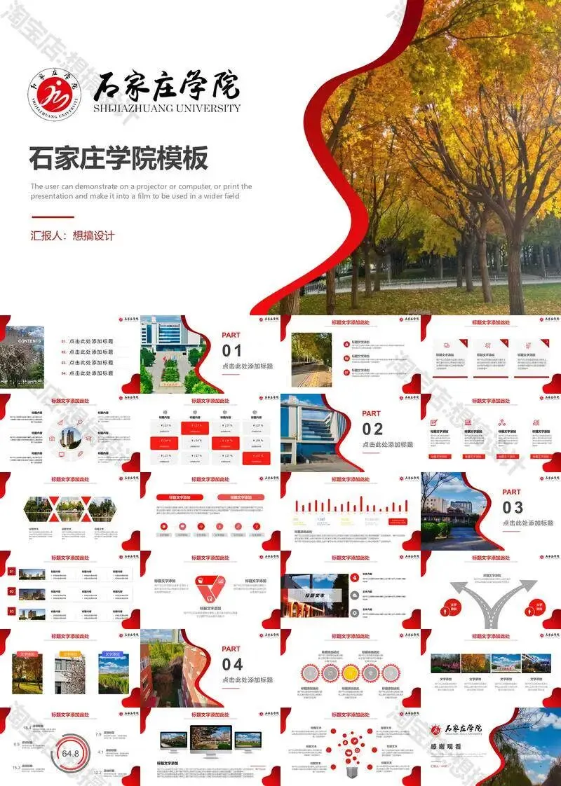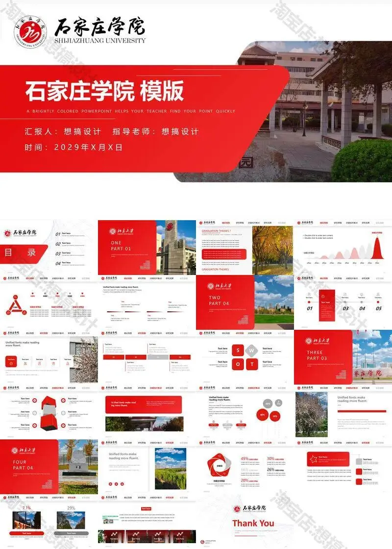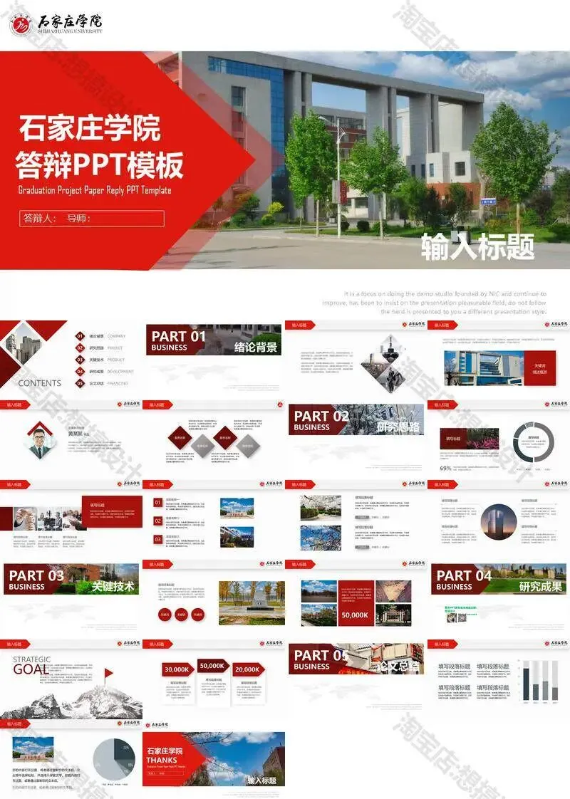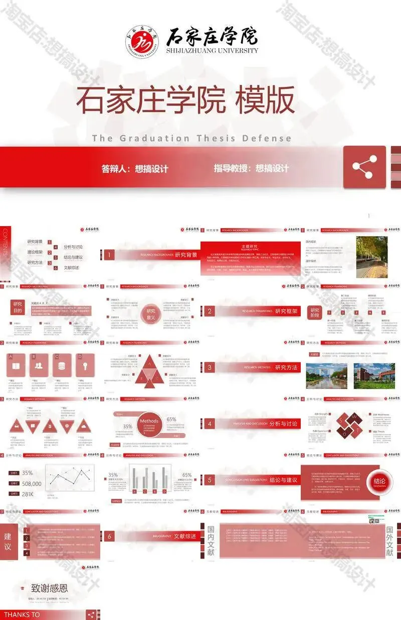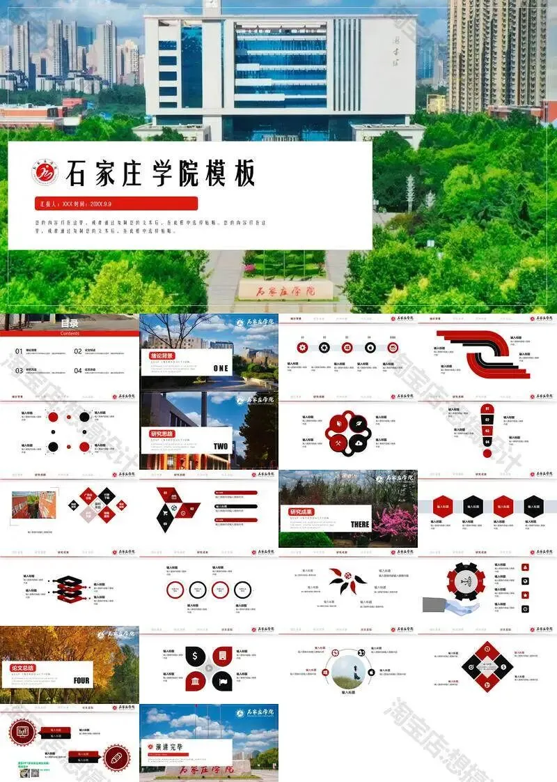 石家庄学院毕业答辩PPT模板汇报幻灯片课件总结作品