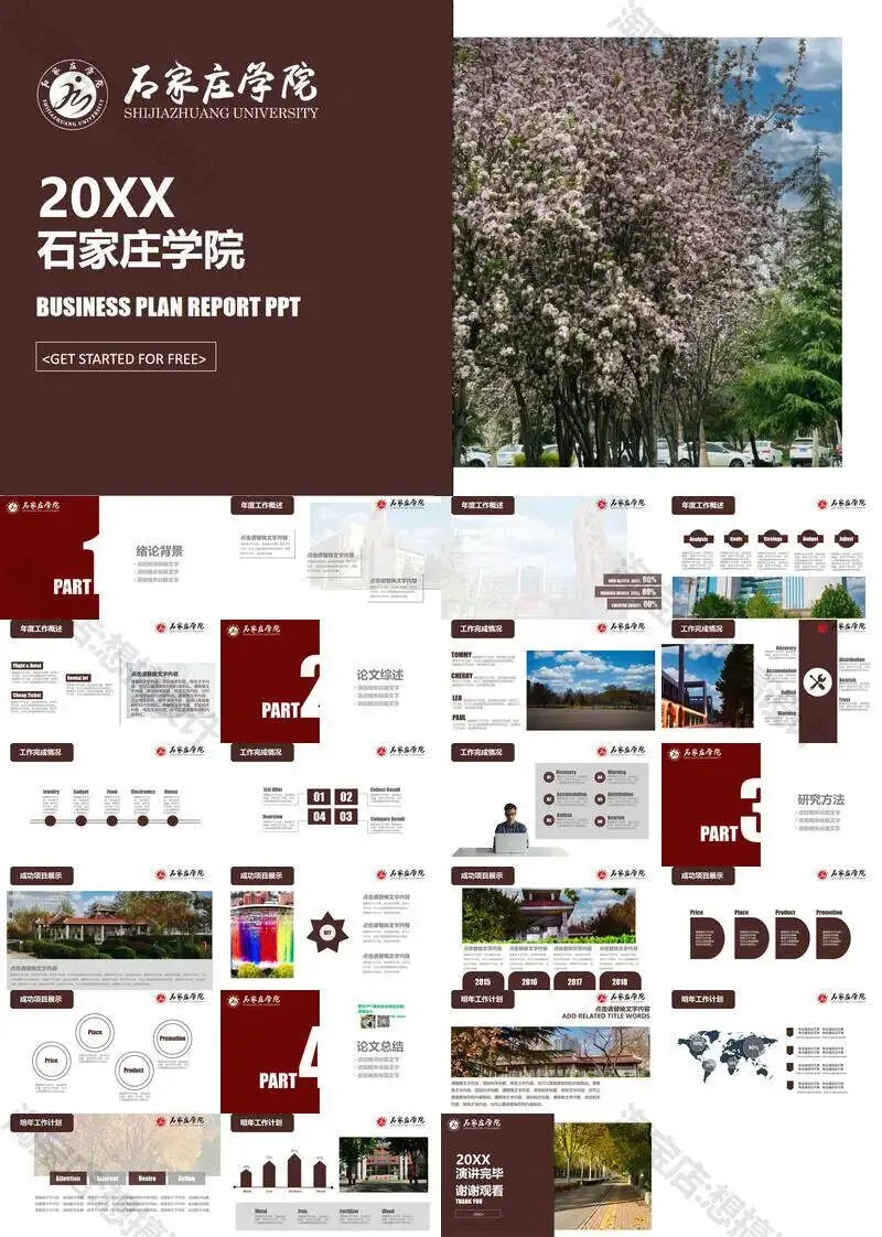 >石家庄学院毕业答辩PPT模板汇报幻灯片课件总结作品