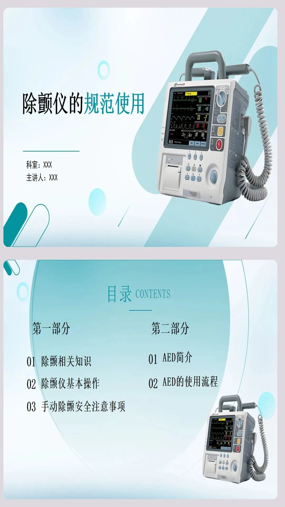 【PPT模板】关键时刻能救命:除颤仪,你其实也能轻松上手——除颤仪规范使用【除颤相关知识+基本操作+安全注意事项+AED简介及使用流程】