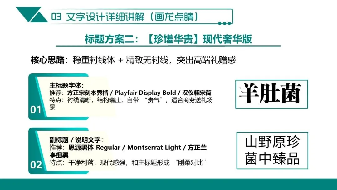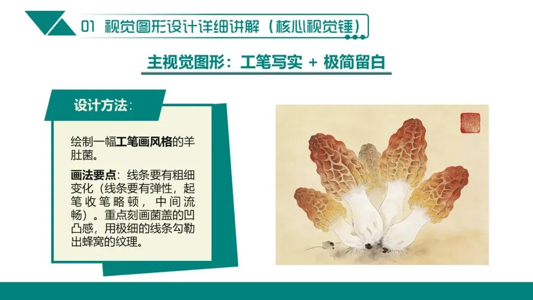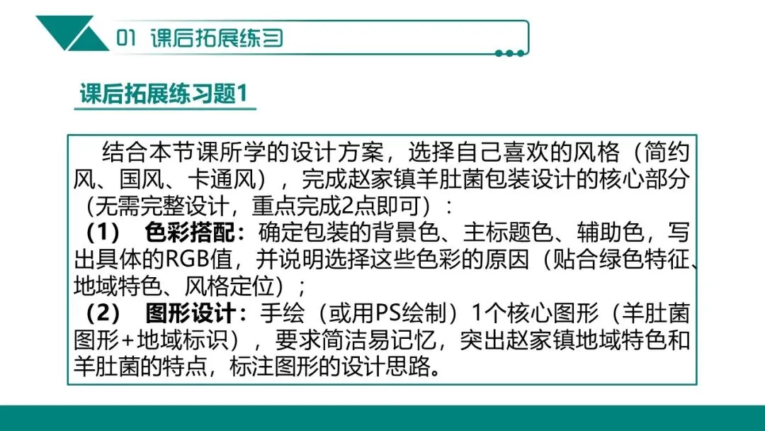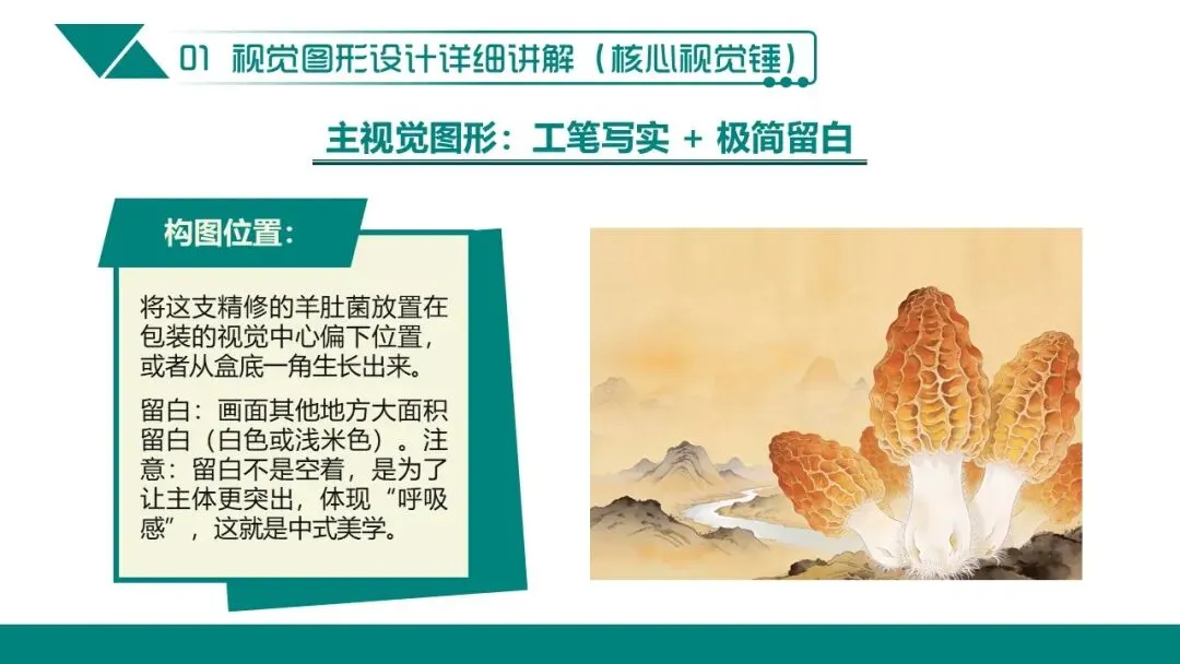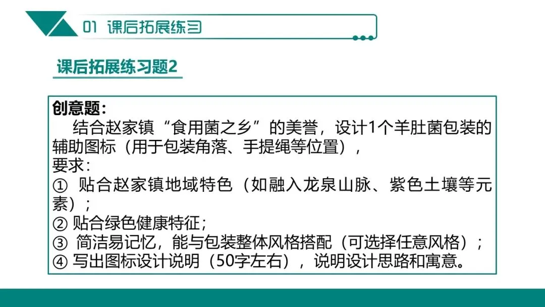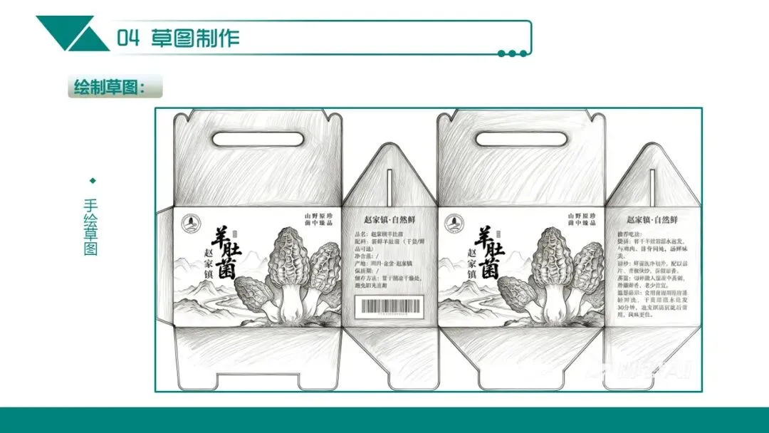③“羊肚菌是绿色、健康的食材,包装用什么颜色、什么图案,能让人一眼就觉得‘新鲜、安全’?”(渗透绿色特征要求)。
