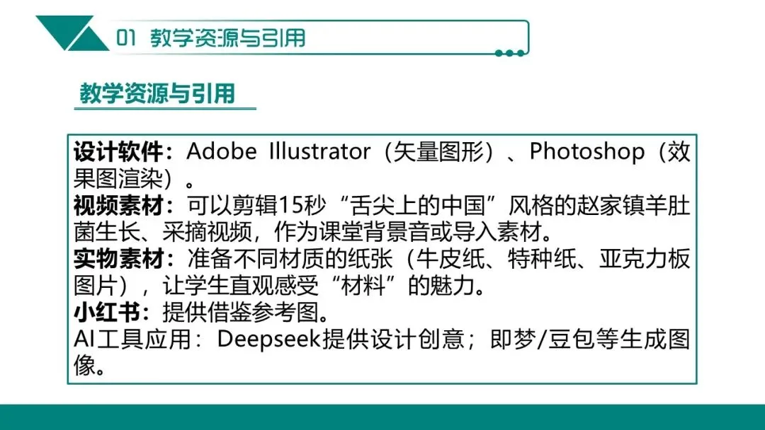 3.导入过渡:“其实包装设计就像给羊肚菌‘穿衣服’,既要穿得好看、显眼(简洁大方、视觉冲击强),还要穿出‘赵家镇特色’(地域标识),穿出‘健康感’(绿色特征),今天咱们就一起动手,给赵家镇羊肚菌设计一套‘出圈’的包装,让更多人知道咱们赵家镇的‘菌中之宝’,好不好?”(语气亲切,贴合快乐学习理念,调动学生参与感)。