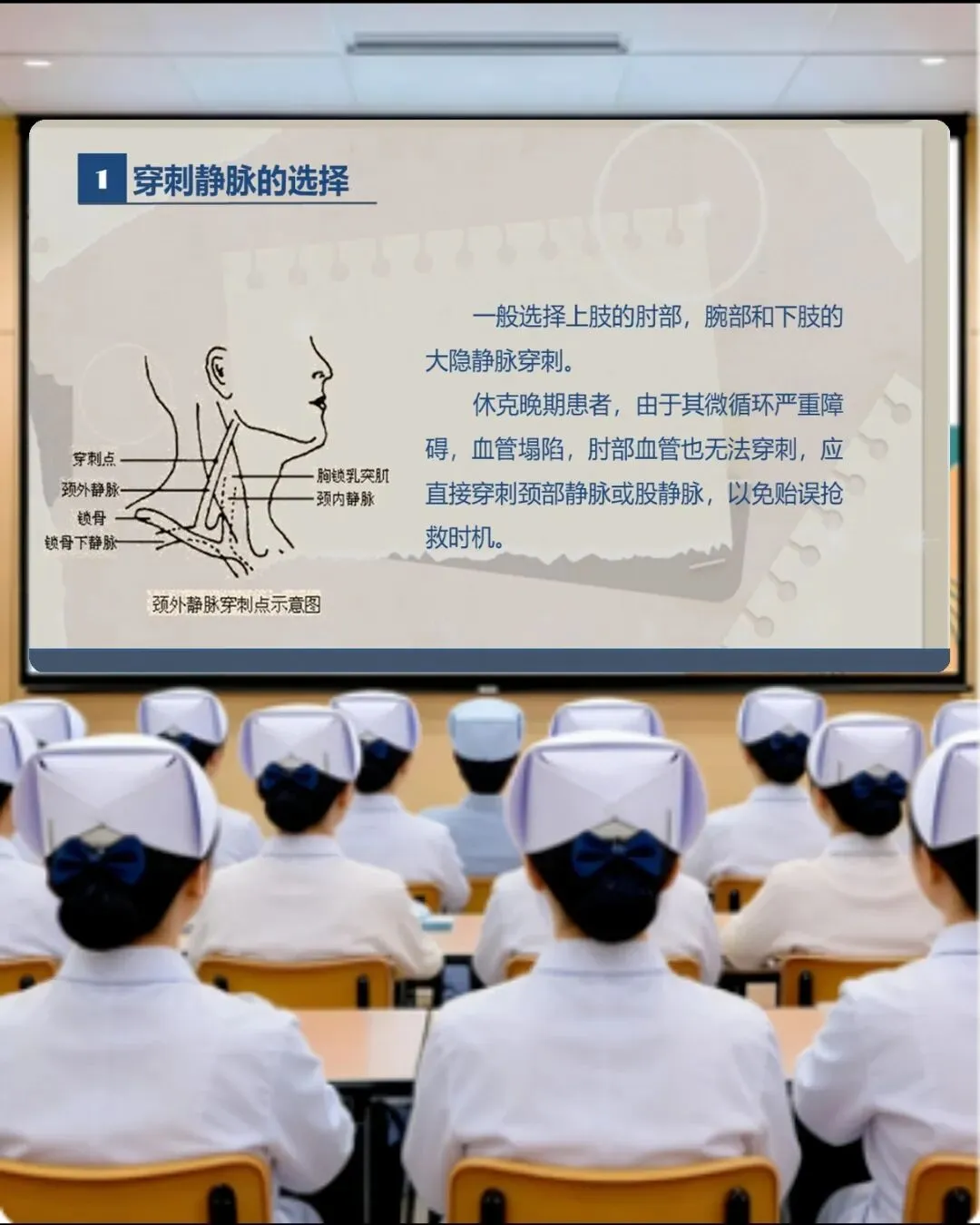 然后是应用和维护,这部分是重点。穿刺静脉要选弹性好、直、清晰的,别选关节处,成人优先上肢,能下床的别用下肢,休克严重的选颈部或股静脉。留置针型号按血管选,尽量用小型号,降低静脉炎风险。