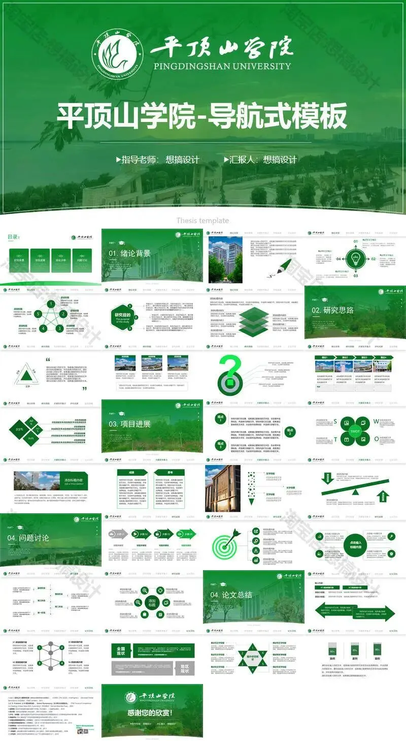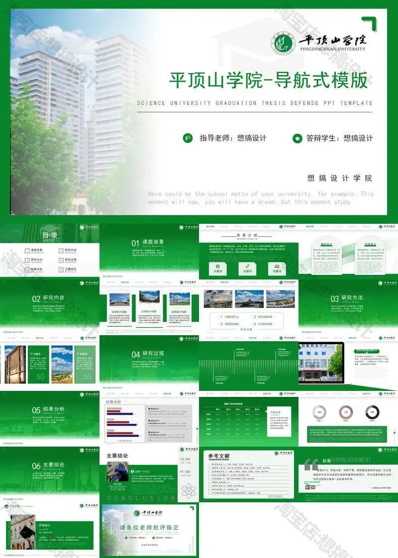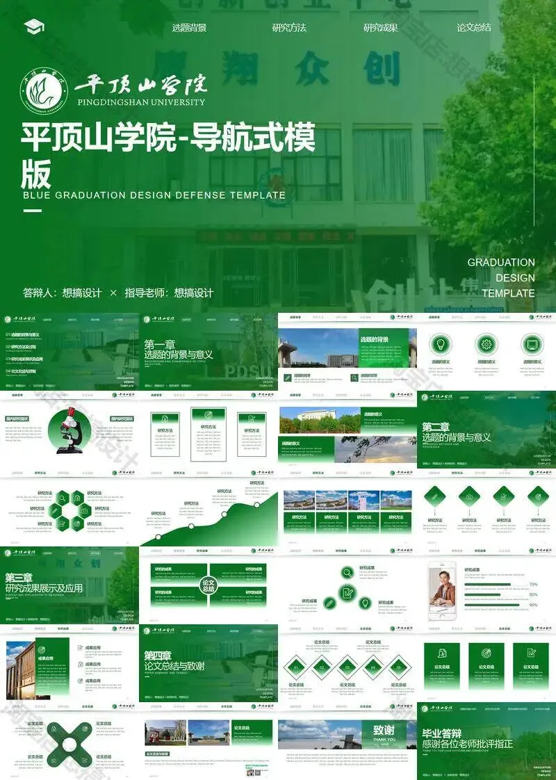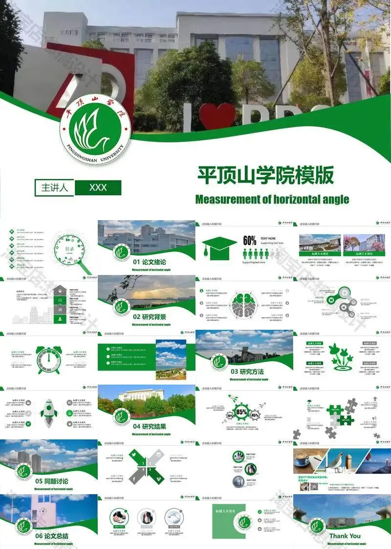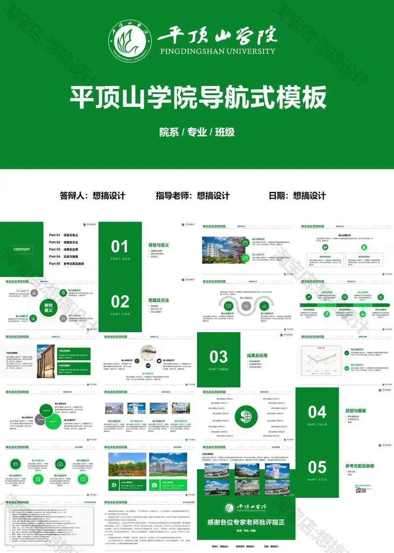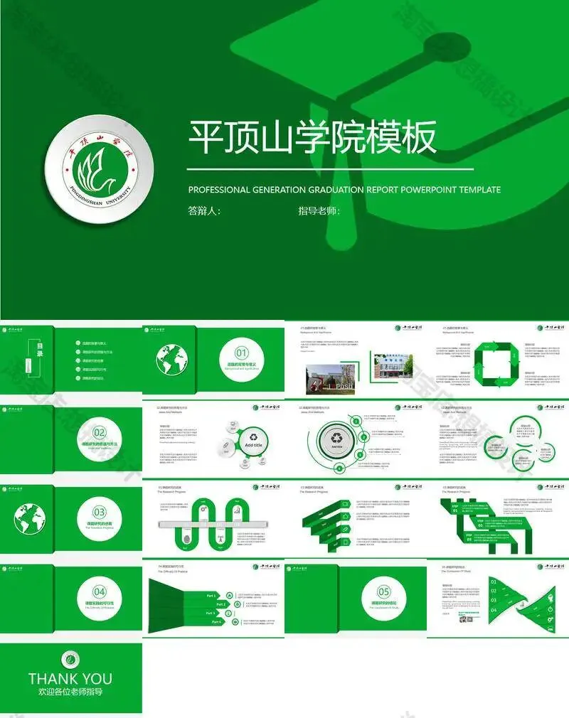 >平顶山学院毕业答辩PPT模板汇报幻灯片课件总结作品
