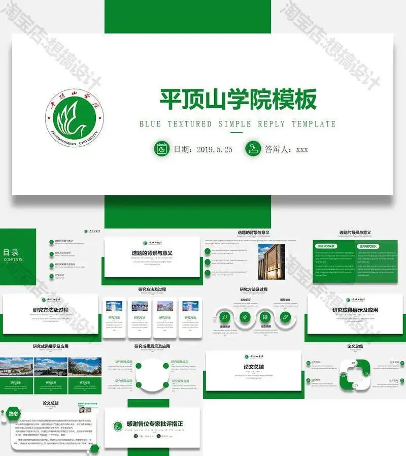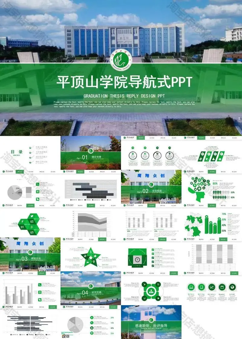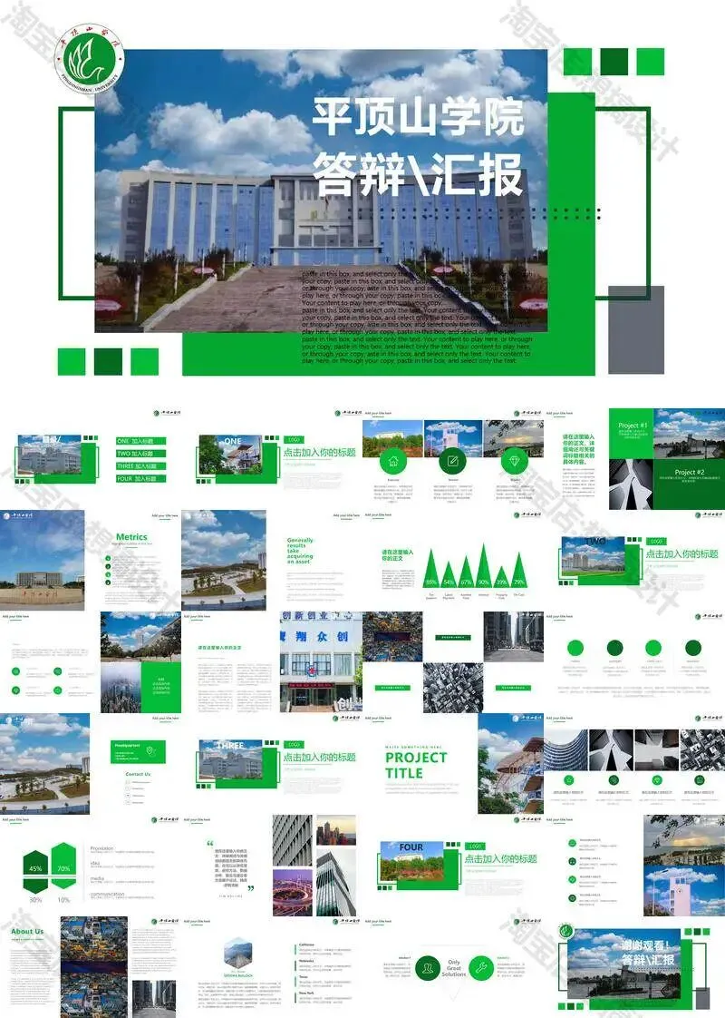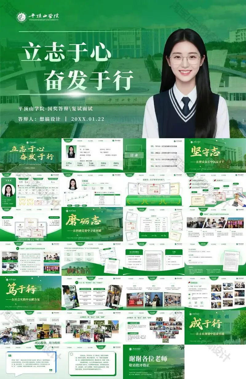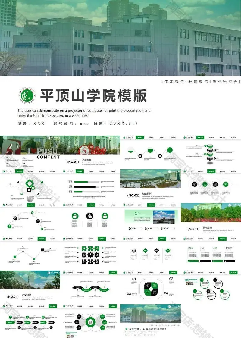 >平顶山学院毕业答辩PPT模板汇报幻灯片课件总结作品