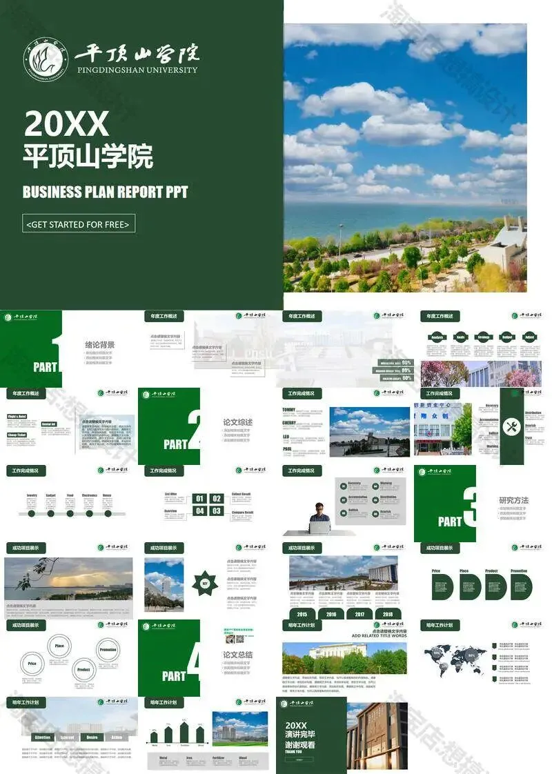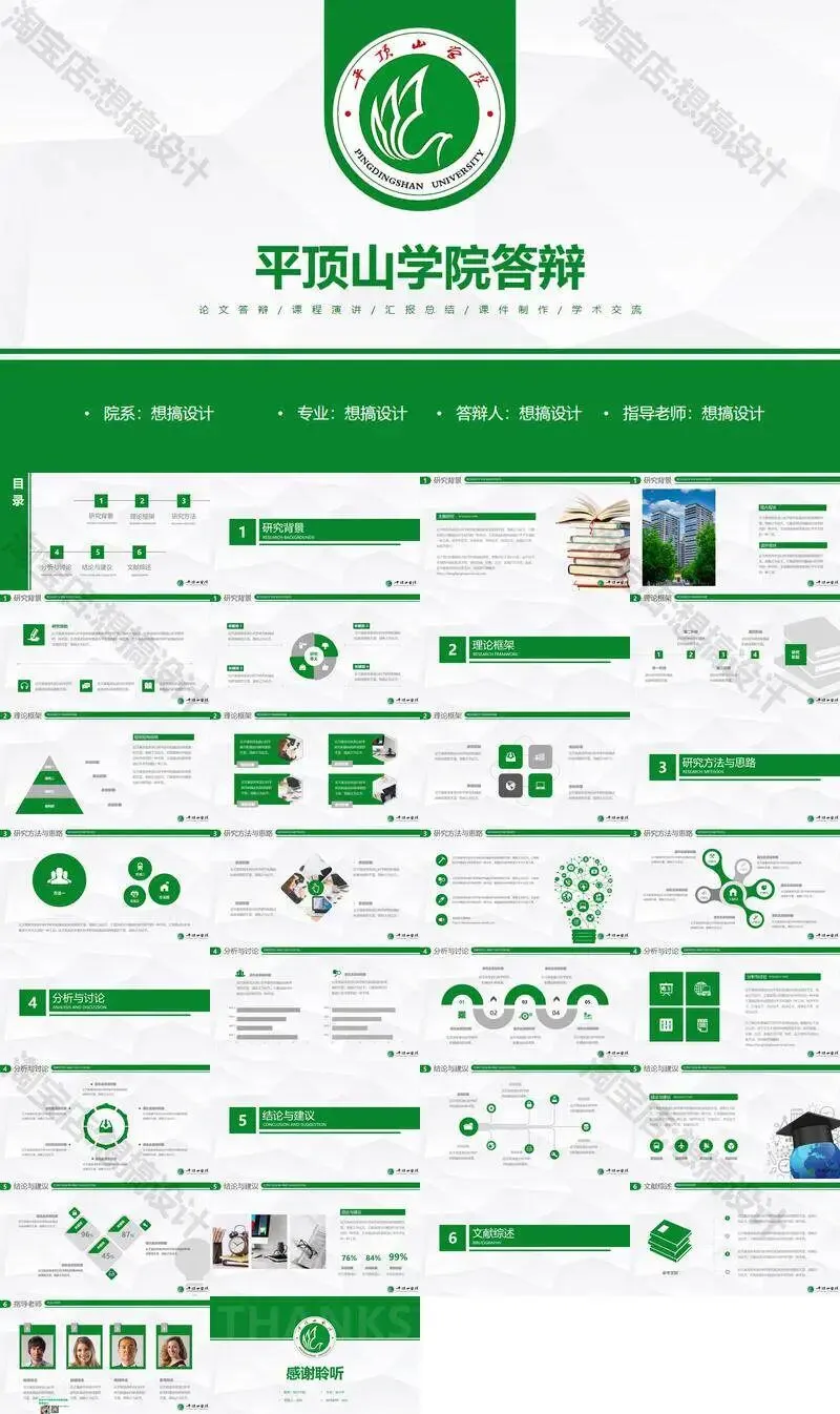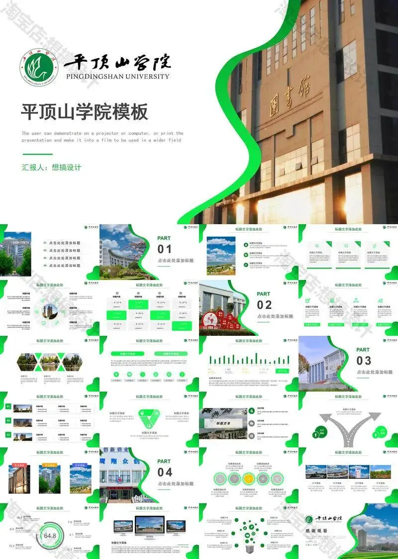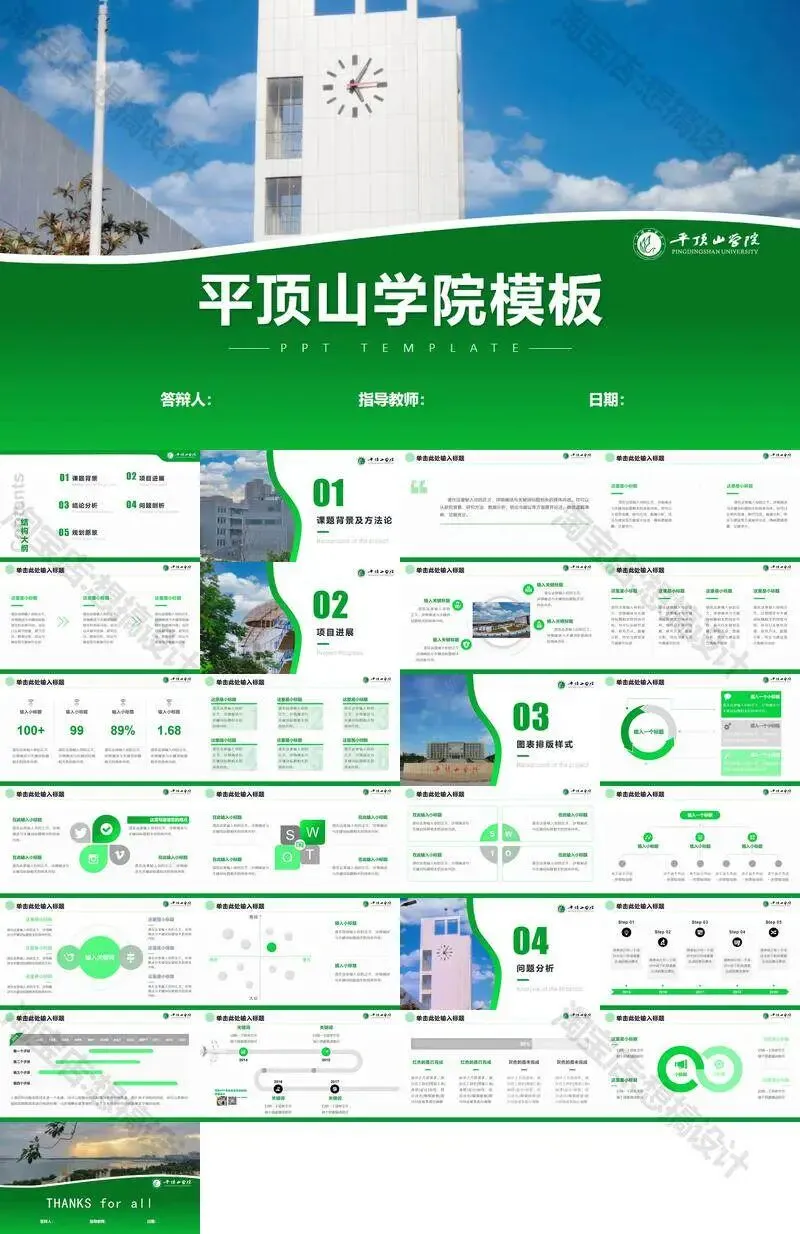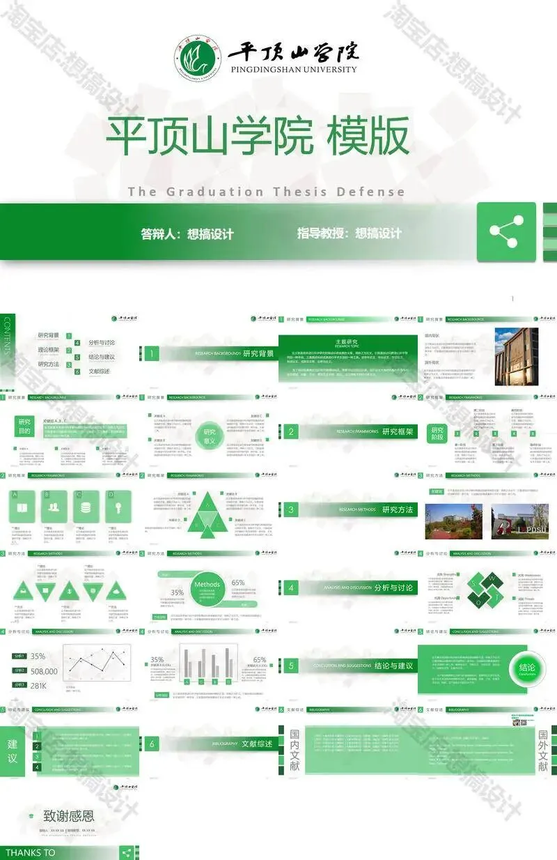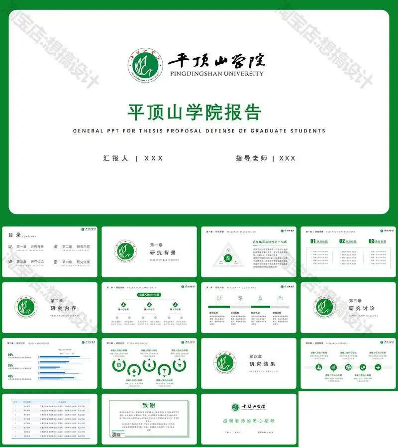 >平顶山学院毕业答辩PPT模板汇报幻灯片课件总结作品
