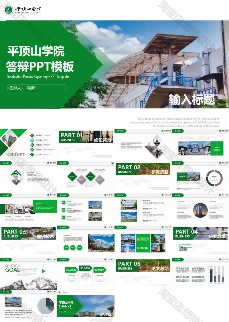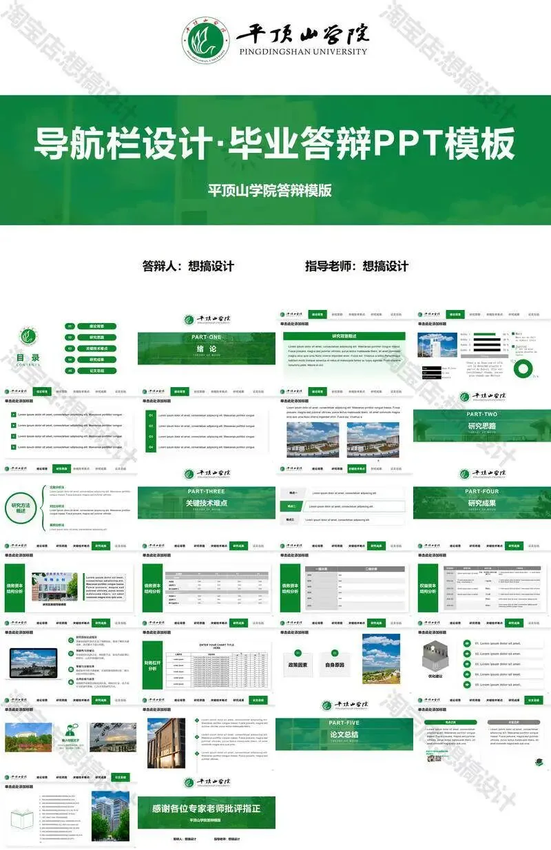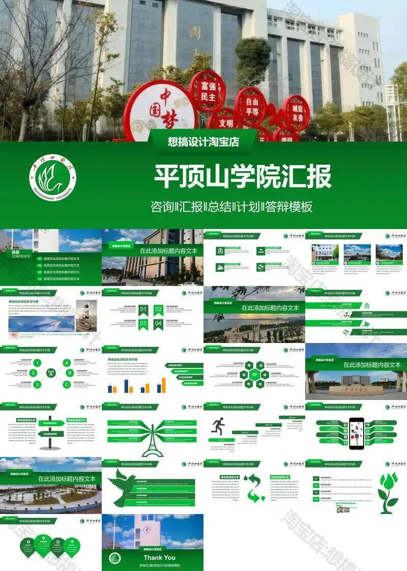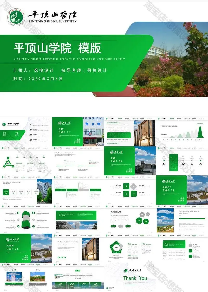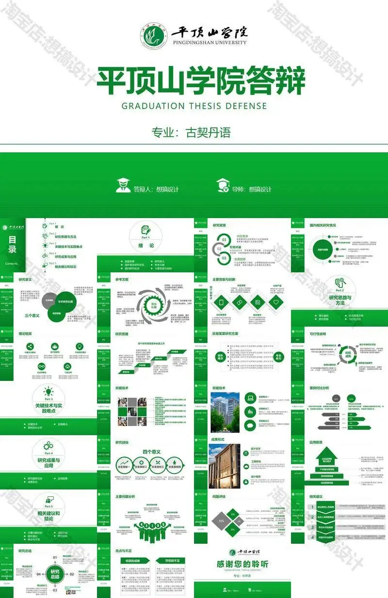 >平顶山学院毕业答辩PPT模板汇报幻灯片课件总结作品