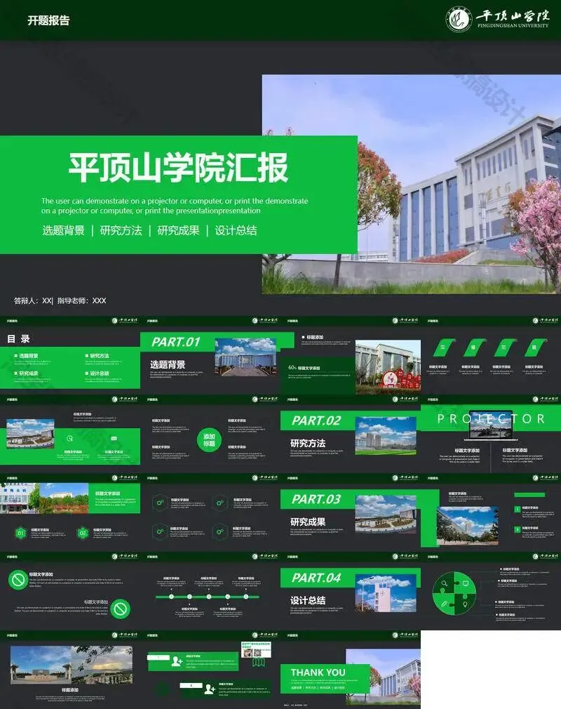 平顶山学院毕业答辩PPT模板汇报幻灯片课件总结作品