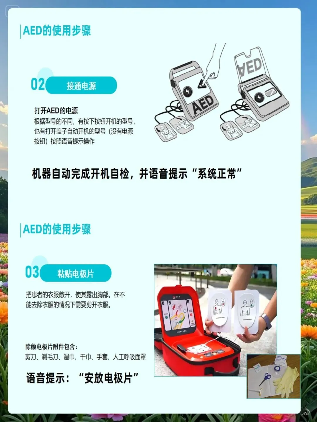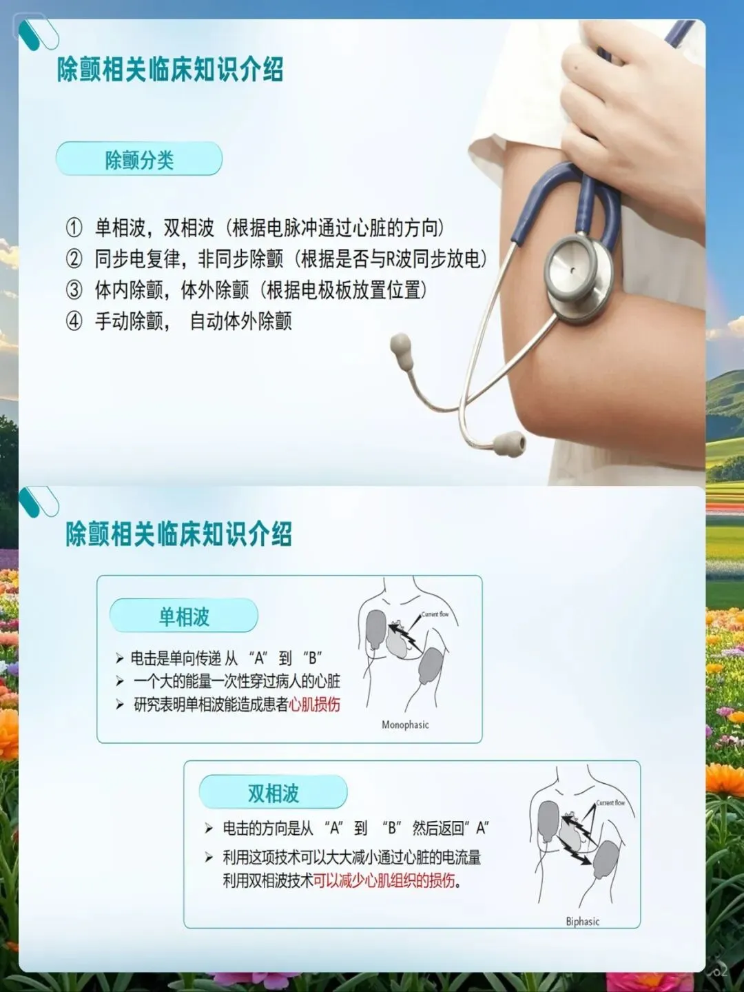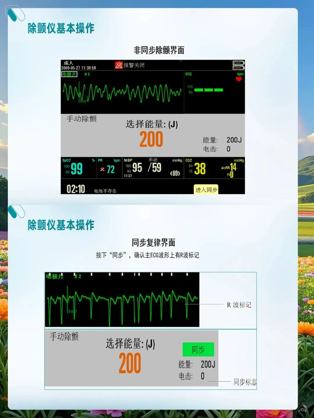 除颤前的准备工作是确保操作成功的基础。护理人员要在确认患者心脏骤停后,立即启动除颤程序,同时做好以下准备工作:将患者平卧于硬板床或地面上,确保身体不接触金属物体;暴露患者胸部,去除衣物、首饰等导电物品;清洁患者胸部皮肤,去除汗液、水分、皮屑等影响导电的因素;连接心电监护电极,确认心律失常类型;打开除颤仪电源,选择同步或非同步模式(心脏骤停选择非同步除颤);将导电糊涂满电极板或贴好自粘电极片;选择合适的除颤能量,双向波除颤仪通常选择150-200焦耳,单向波除颤仪选择360焦耳。