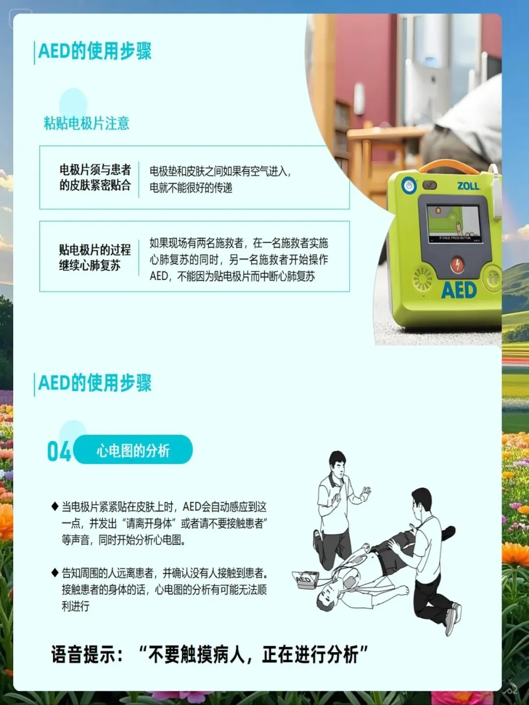 除颤操作流程的标准化执行是确保抢救成功的关键。除颤操作包括以下步骤:确认所有人员与患者脱离接触,大声喊出"大家闪开";同时按下两个电极板的放电按钮,完成除颤;除颤后立即恢复胸外按压,不要浪费时间检查脉搏或心律;继续心肺复苏5个周期或2分钟后,再检查心律恢复情况;如仍为室颤或室速,可按照相同或更高能量再次除颤;一般最多除颤3次,如未成功,应立即给予血管活性药物和抗心律失常药物,同时持续胸外按压。整个除颤过程要快速、准确、有序,避免不必要的延误。