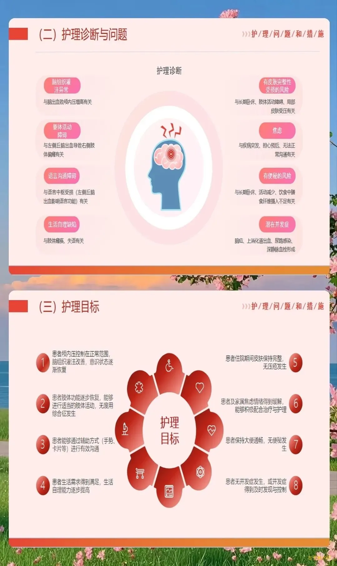 脑出血患者并发症发生率高,护理人员需要具备前瞻性思维,提前识别风险,实施预防措施。应激性溃疡是常见并发症,早期使用质子泵抑制剂或H2受体拮抗剂进行预防,同时密切观察胃液颜色和性质,及时发现消化道出血征象。