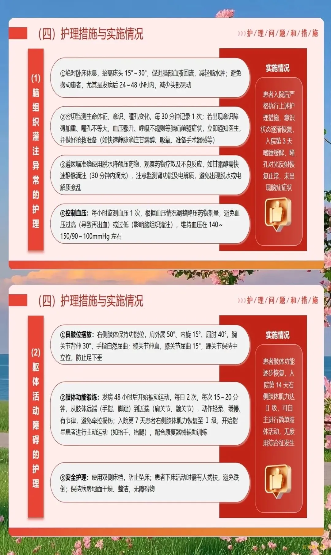 颅内压增高是脑出血患者的主要死亡原因之一,因此颅内压控制是护理工作的重中之重。头高位是基础措施,通常将床头抬高30度,既有利于静脉回流,降低颅内压,又能预防误吸。但需要注意避免颈部过度屈曲或扭曲,以免影响静脉回流。