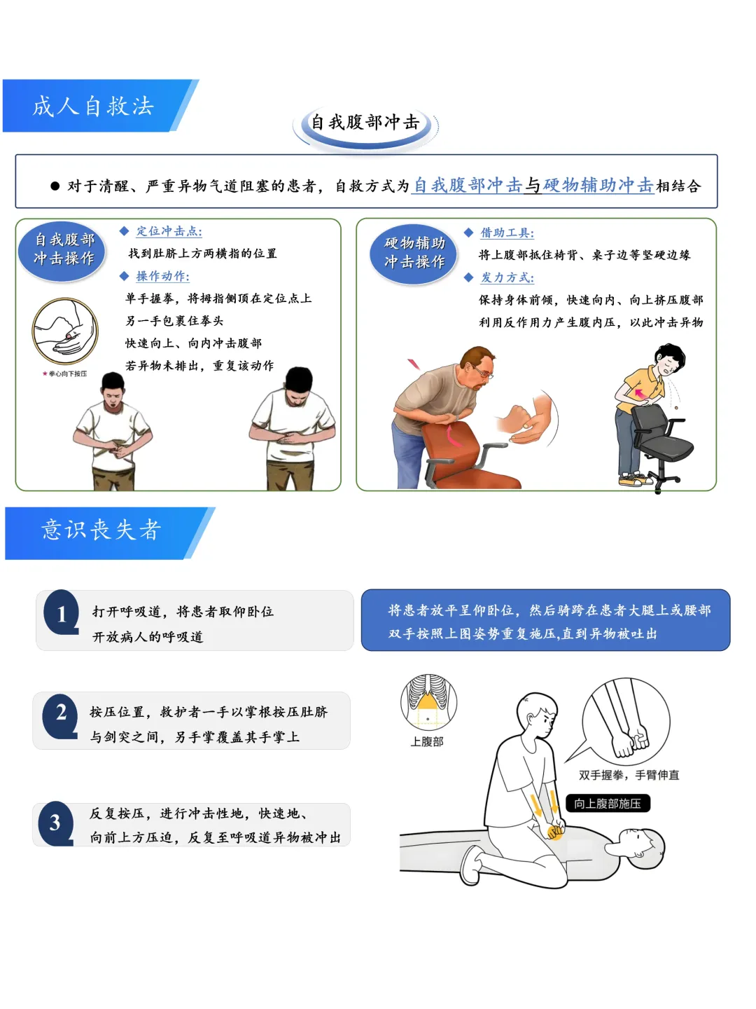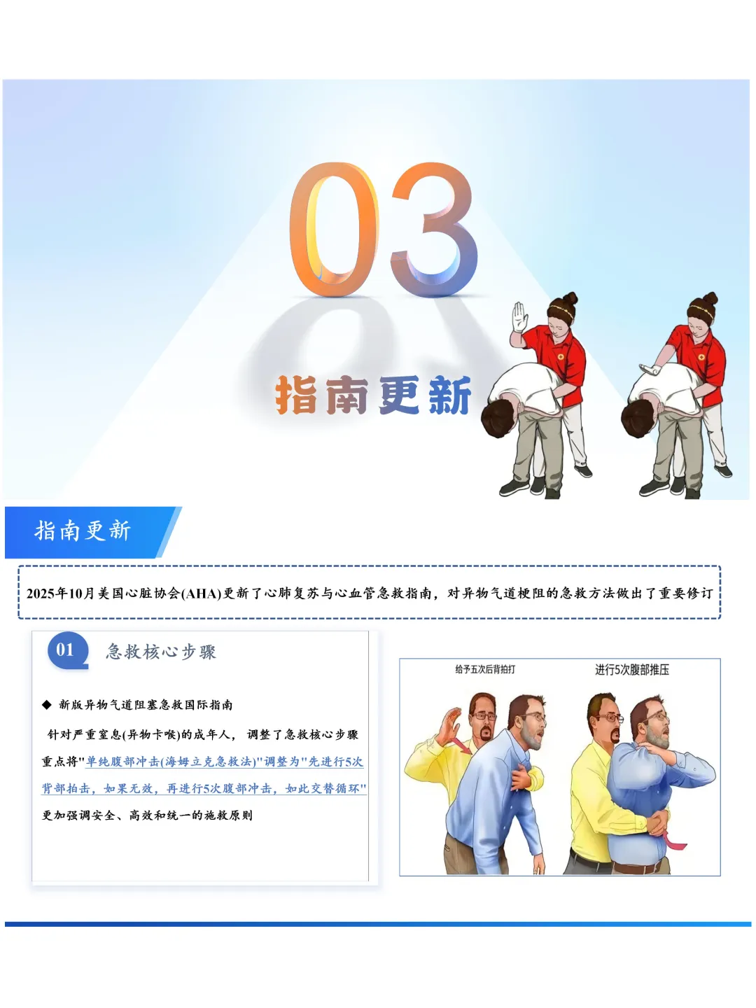 重点说下 2025 年 AHA 指南的核心更新,不再是单纯的腹部冲击,而是先 5 次背部拍击,无效再做 5 次腹部冲击,交替循环。这样做响应更快、风险更低,还能提高急救成功率。