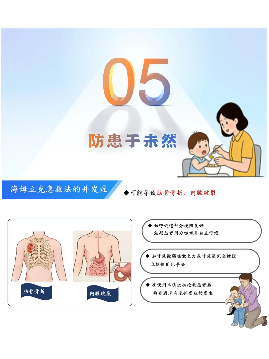 最后提醒大家,急救成功后要观察患者至少 15 分钟,就算自救成功也得去医院检查,防止肋骨骨折、内脏破裂等并发症。把握黄金抢救四分钟,没效果就立刻做心肺复苏并打 120,平时也要做好预防,避免意外发生。