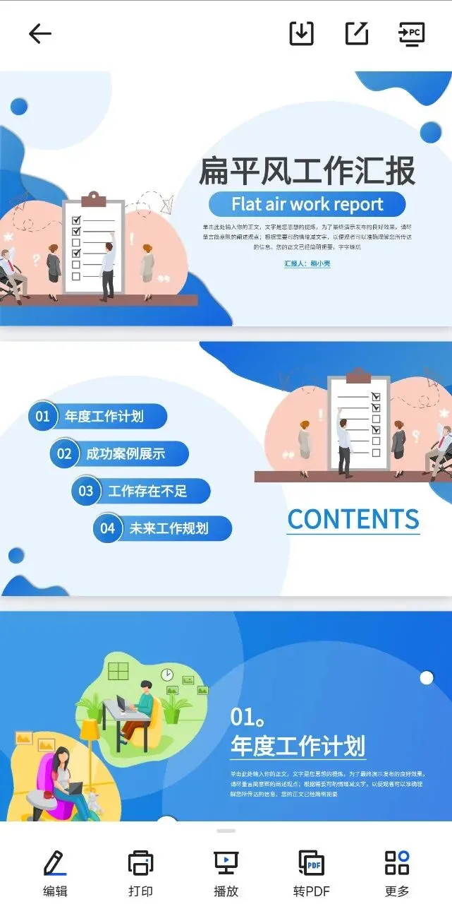 本文分享的是:【扁平风工作汇报ppt模板.pptx】