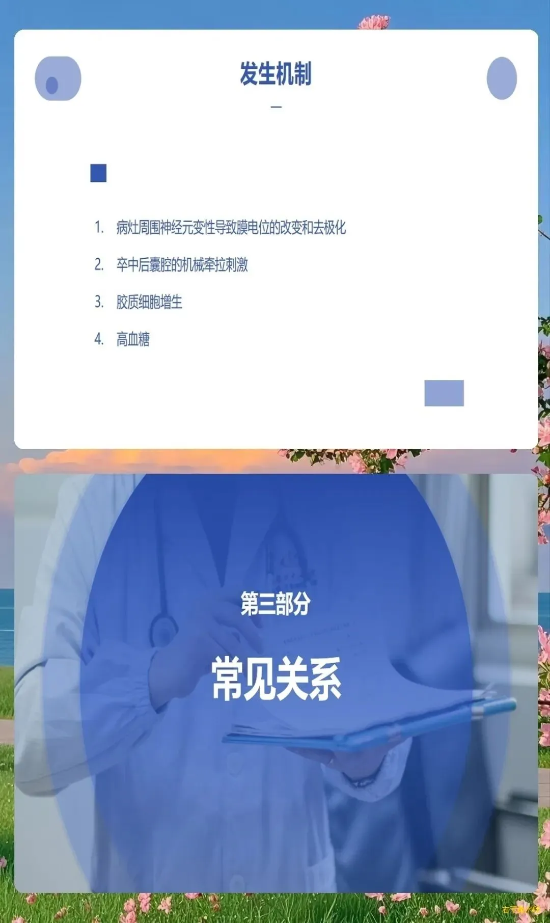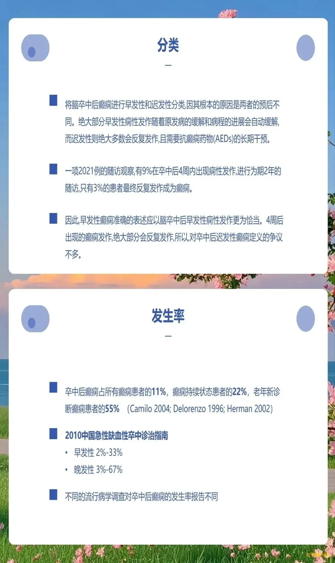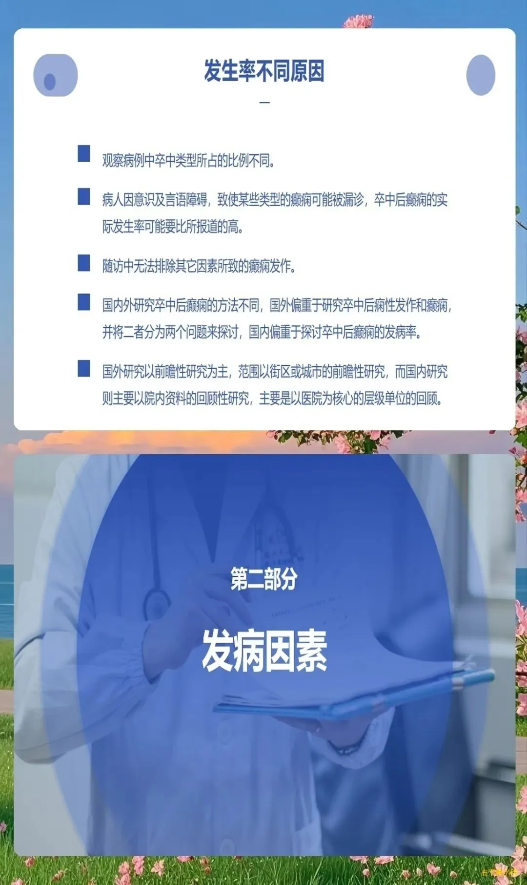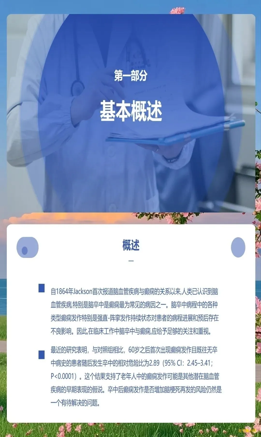 脑卒中后癫痫作为卒中重要的并发症之一,不仅影响患者神经功能的恢复,还可能加重脑损伤,增加致残率和死亡率。据统计,脑卒中后癫痫的发生率约为2-15%,其中早期癫痫(卒中后2周内)发生率约为2-5%,晚期癫痫(卒中后2周后)发生率约为3-10%。对于护理人员而言,掌握脑卒中后癫痫的识别要点、急救处理和长期护理策略,是提升护理质量、改善患者预后的关键所在。一、脑卒中后癫痫的早期识别与风险评估