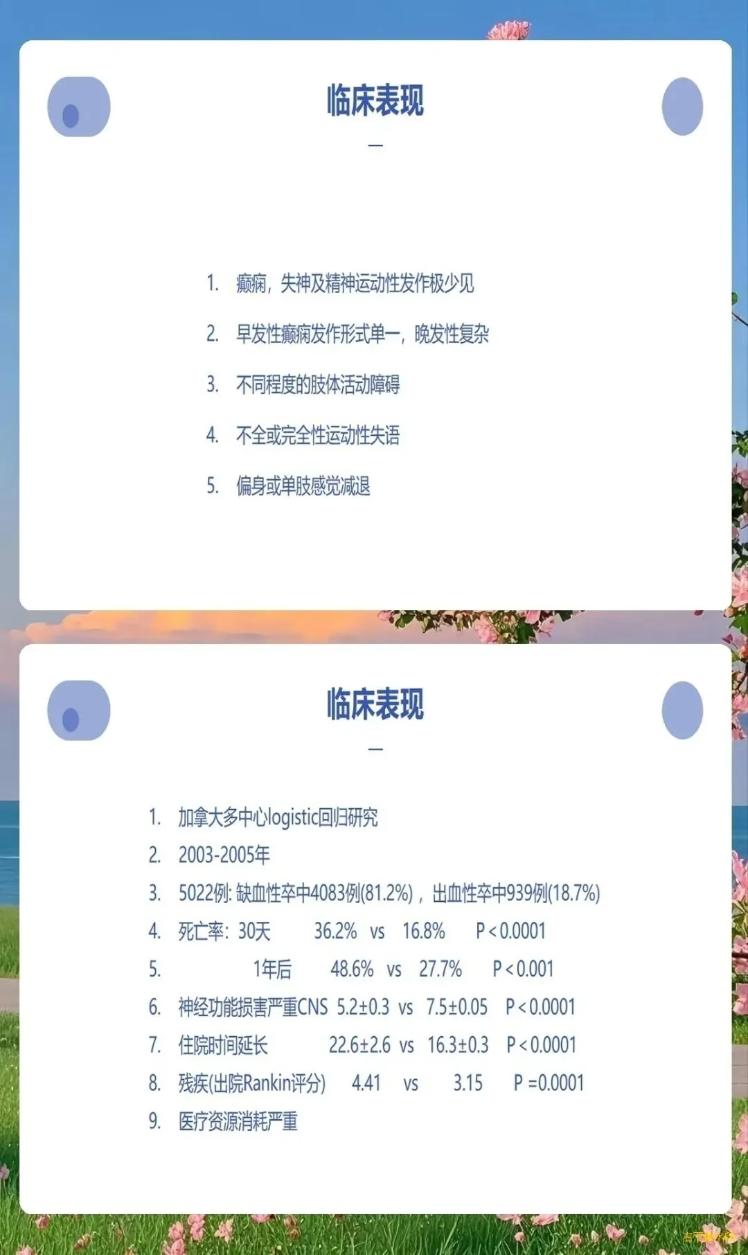 脑卒中后癫痫的临床表现具有多样性,部分患者仅表现为意识水平下降、肢体抽动或感觉异常,缺乏典型的癫痫发作特征,这给早期识别带来了挑战。护理人员需要密切观察患者的细微变化,特别要警惕那些"不典型"的癫痫表现。例如,患者突然出现的凝视、言语中断、自动行为、肢体阵挛等症状,都可能提示癫痫发作。