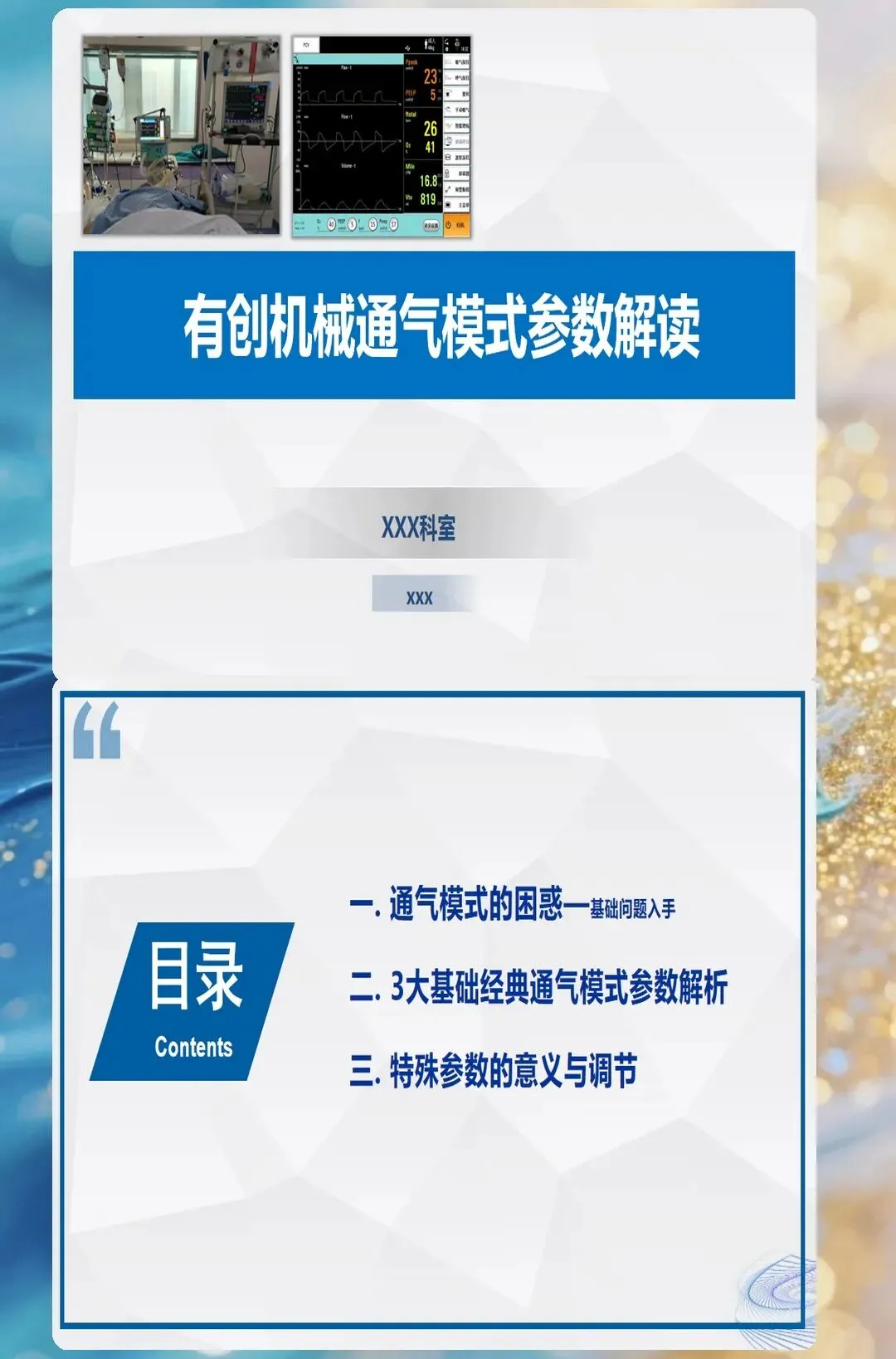 有创机械通气是ICU护理与治疗的基石,但呼吸机参数的复杂设置常常成为医护人员的"数字迷宫"——知道每个参数的含义,却不知道如何根据患者状态动态调整;能识别参数异常,却无法快速定位原因。真正有价值的参数解读,不是背诵定义和正常值范围,而是理解参数间的联动关系,建立"参数-病理-决策"的临床思维框架。👆👆👆👆👆
