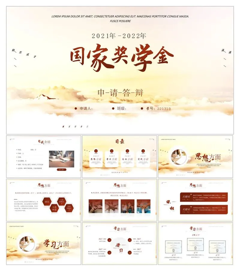 本文分享:大学生奖学金系列PPT模板