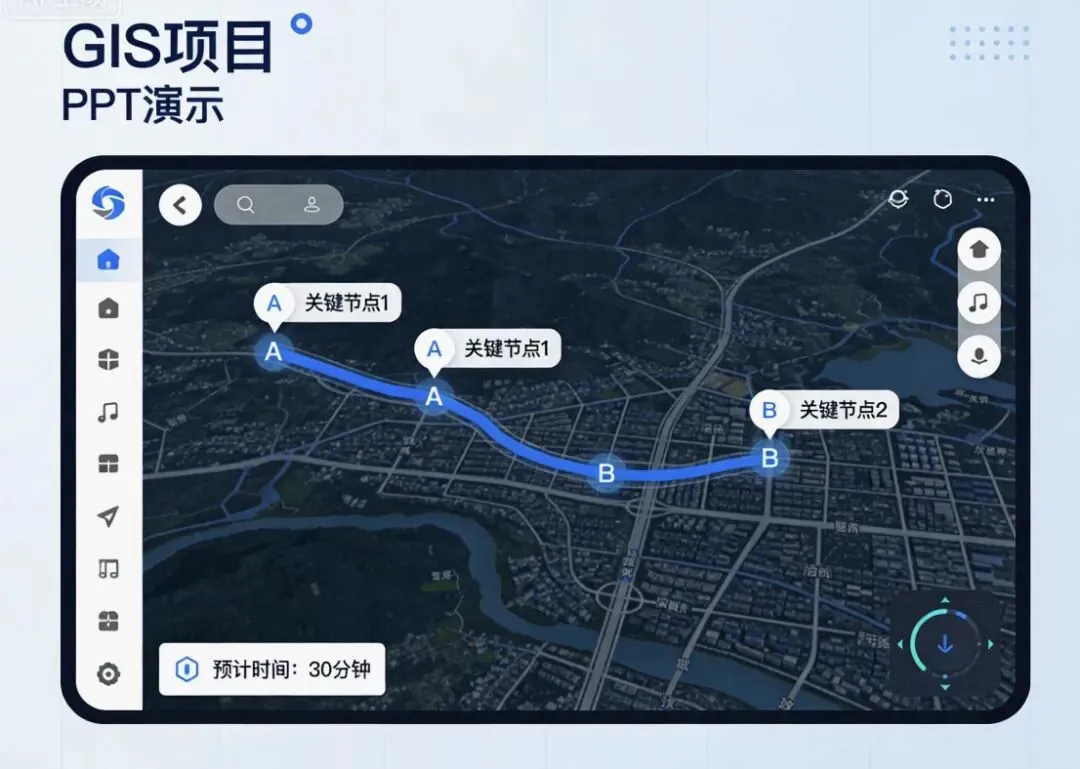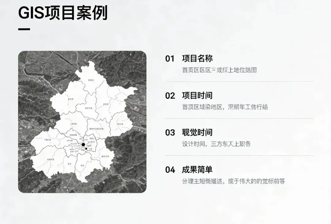GIS地图PPT的页面布局需遵循空间分析逻辑,层次清晰、重点突出,适配评审与汇报场景,核心页面设计规范如下。