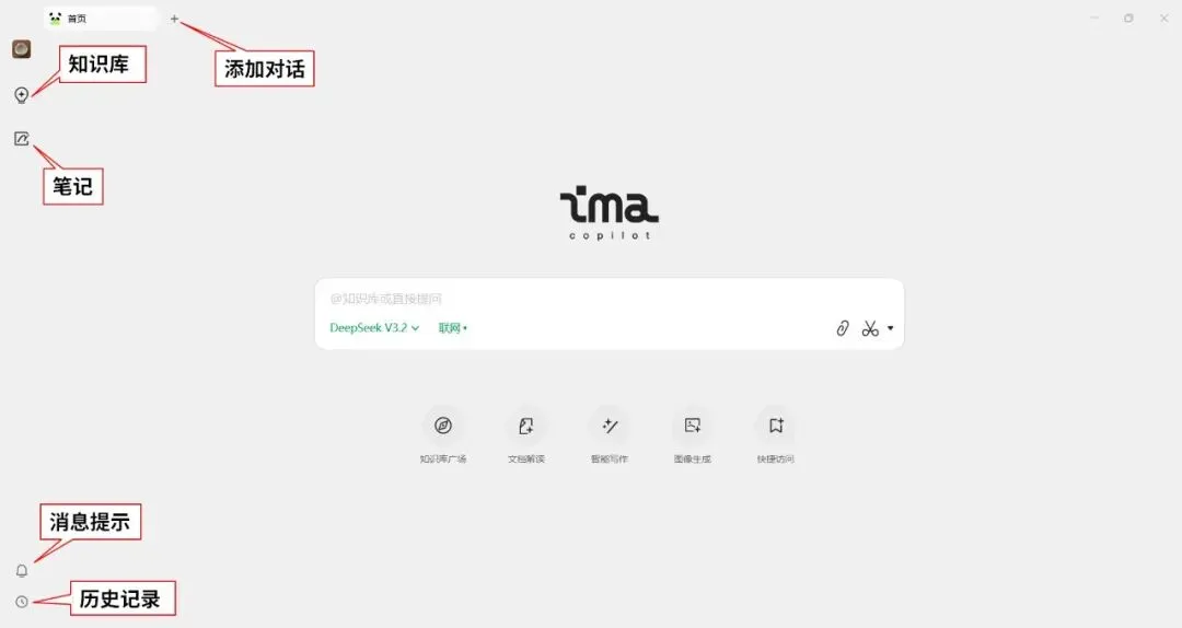用浏览器到网址:https://ima.qq.com/下载ima客户端,安装到本地电脑,登录后使用“微信”扫描,进入如下图1所示的ima应用界面。
