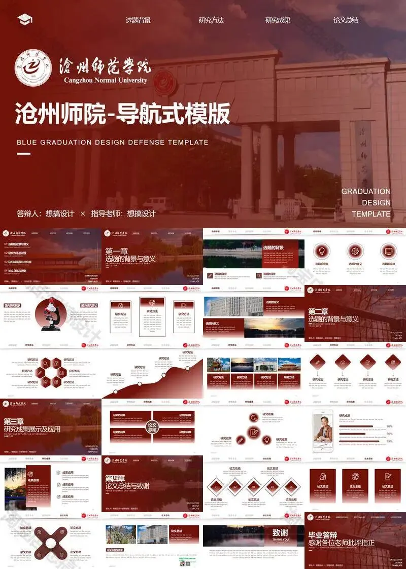 长沙师范学院毕业答辩PPT模板汇报幻灯片课件总结大学生作品