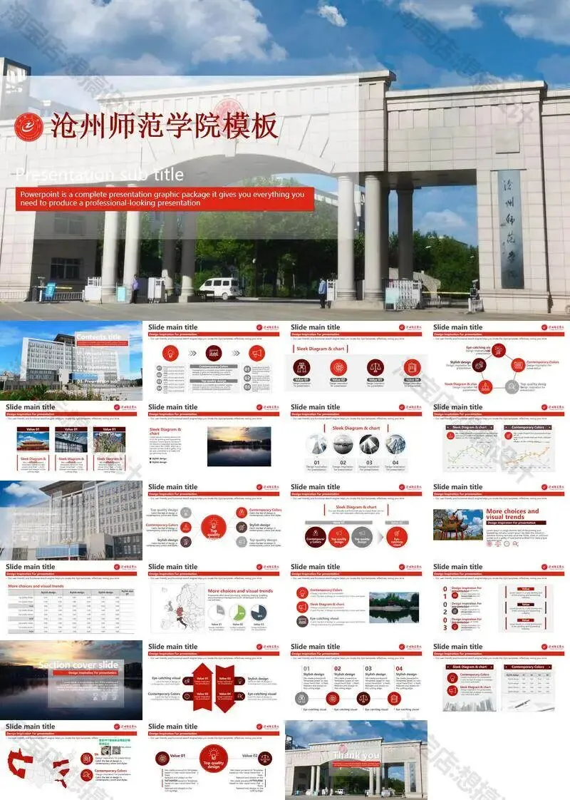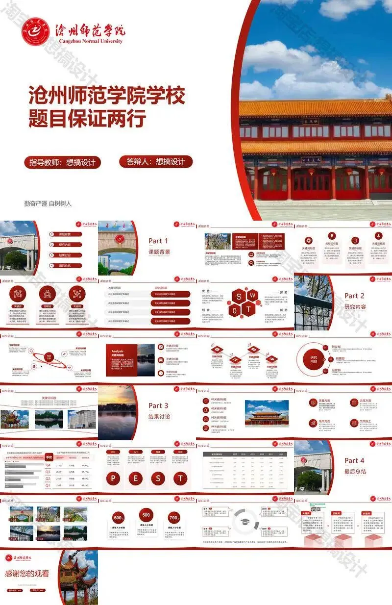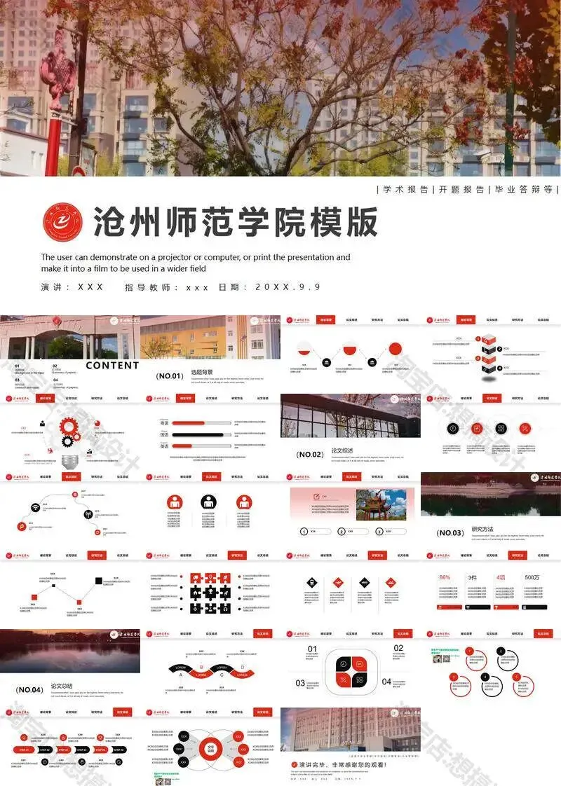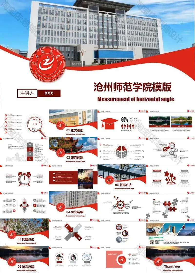 >沧州师范学院PPT模板组会中期学术申博毕业答辩课题汇报总结