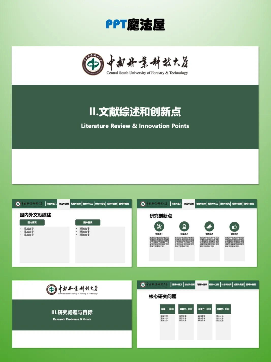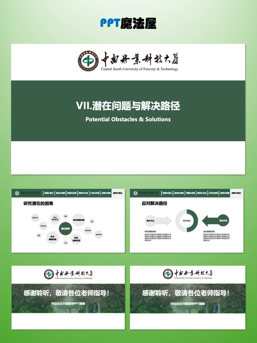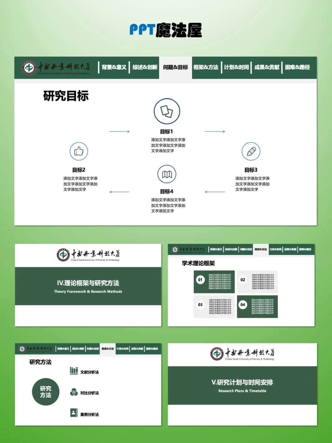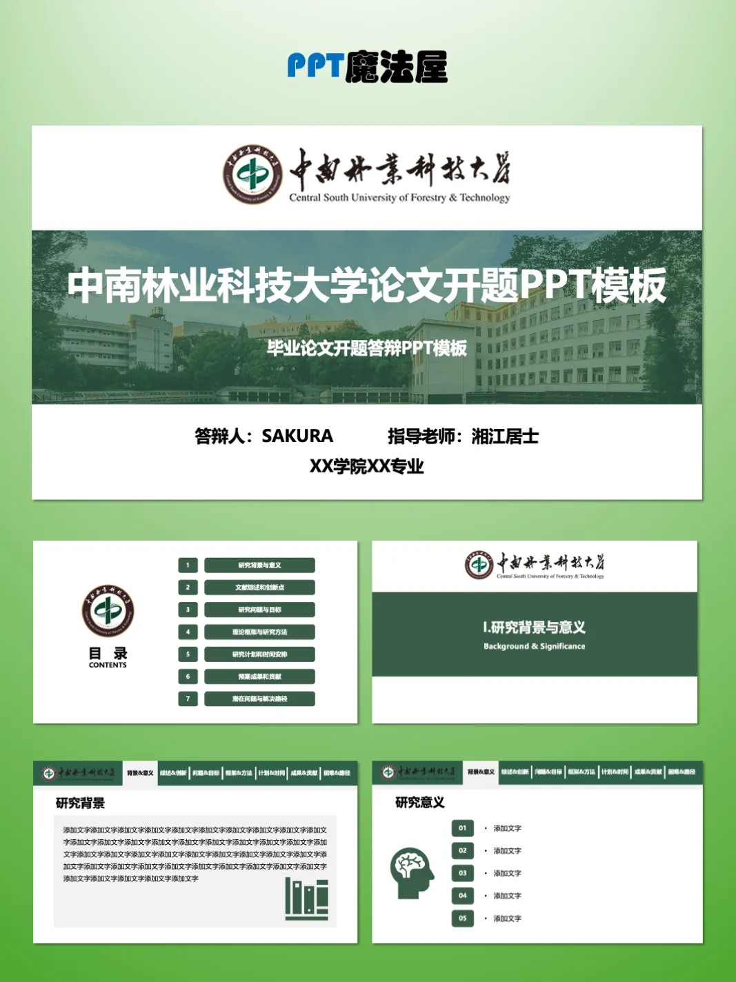 >中南林业科技大学毕业论文开题PPT模板