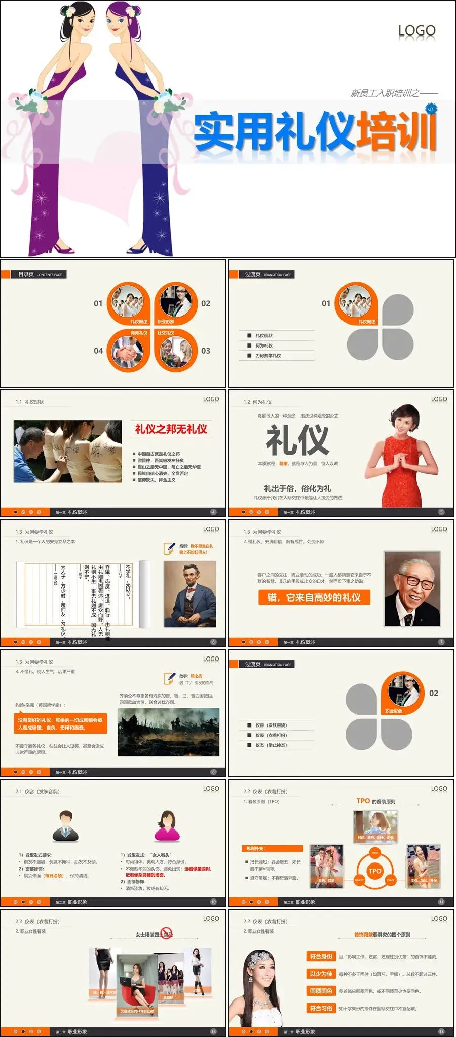 逻辑清晰:每套模板都按照培训逻辑设计,封面、目录、过渡页、内容页、封底一应俱全