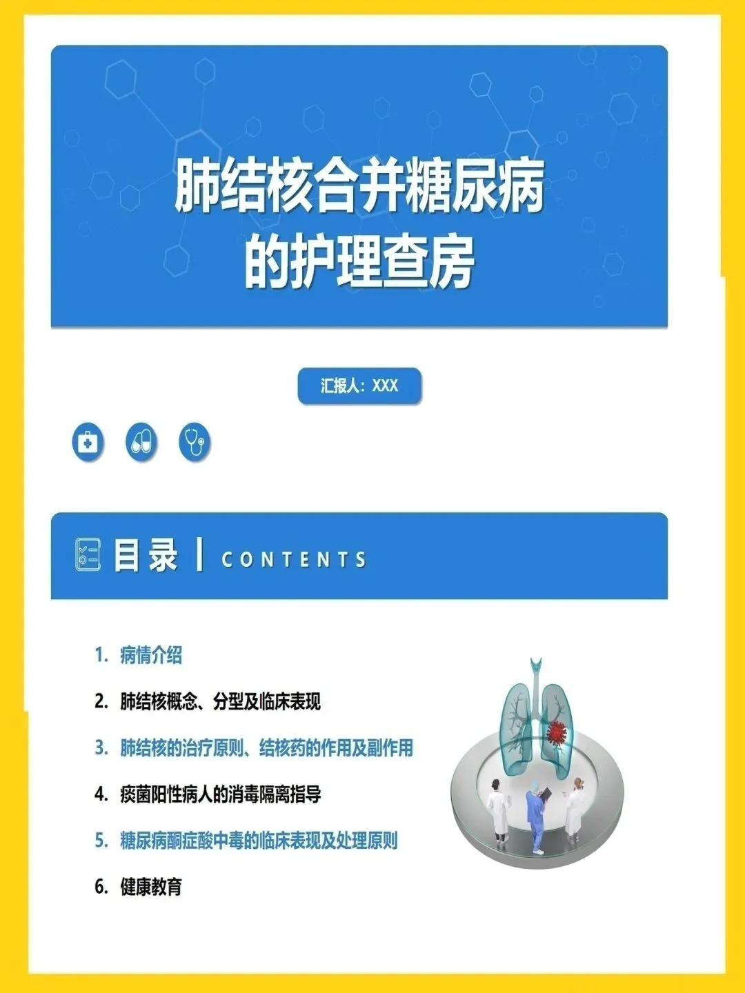 🍉名称:肺结核合并糖尿病的护理查房ppt模板课件模板