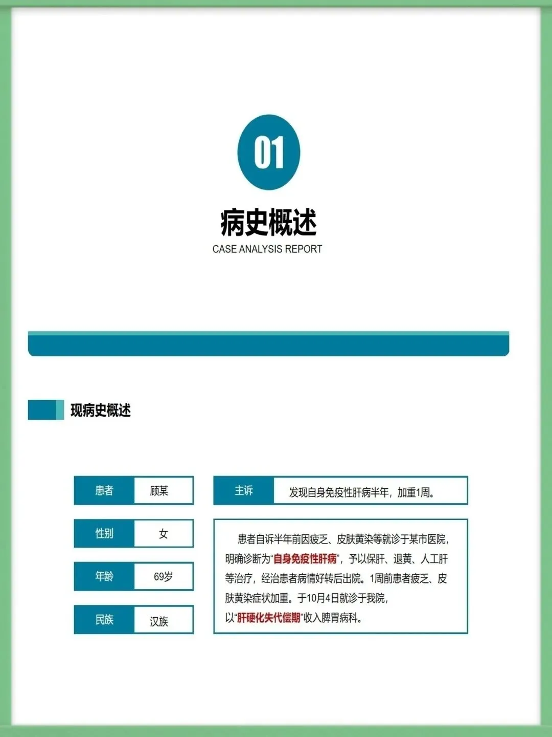 【护理PPT模板】自身免疫性肝硬化病例一例PPT模板