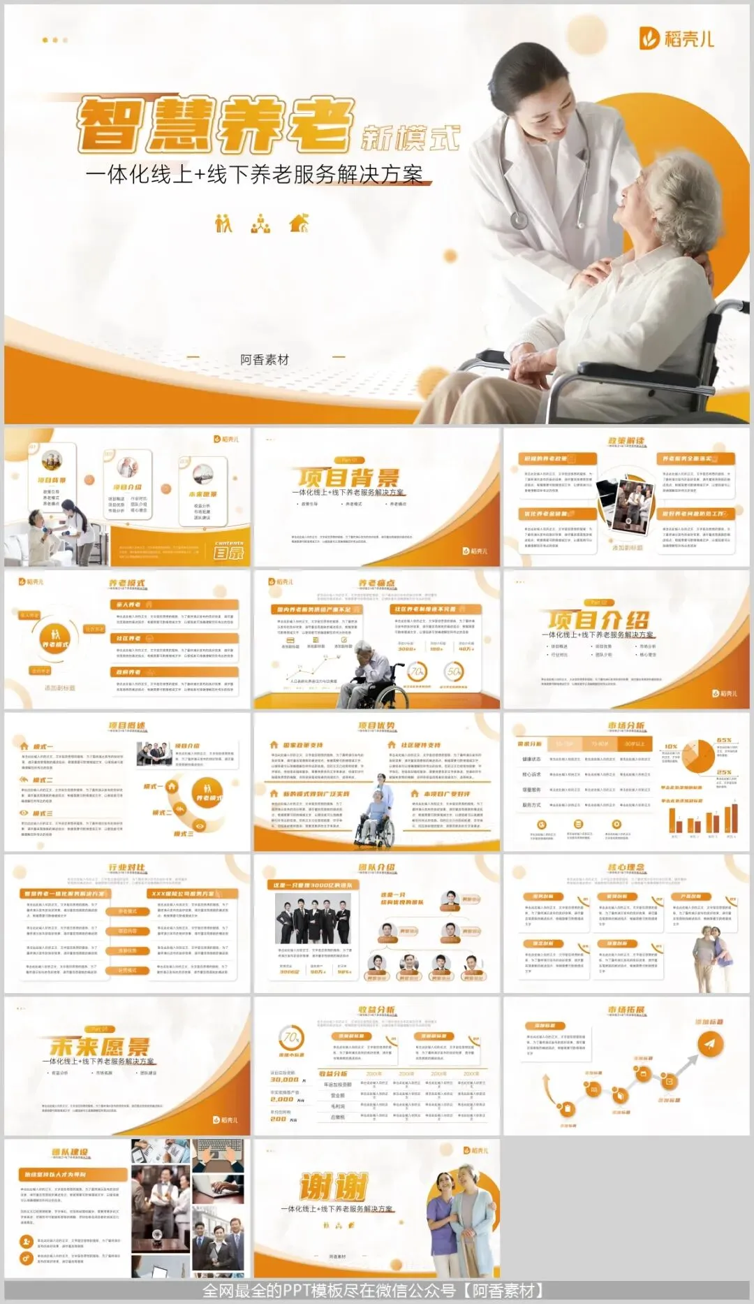 阿香给大家分享一期银发经济之智慧养老PPT模板,一共有10套模板!获取方式:请查看文章底部