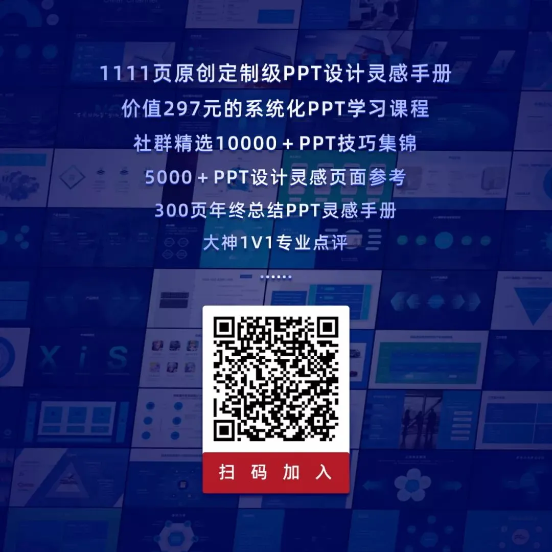 已超20000位读者,现在加入,可以免费获取3门价值297元的 PPT 视频学习课程,以及超5000页涵盖各个类型的PPT设计灵感手册......