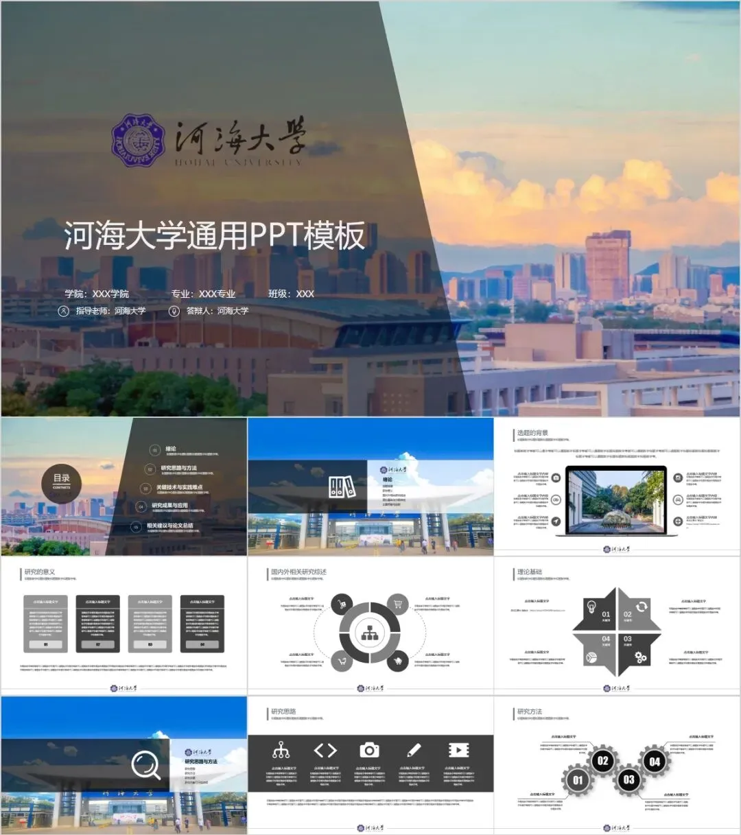 河海大学专属PPT模板来了,喜欢的同学不要错过啦!