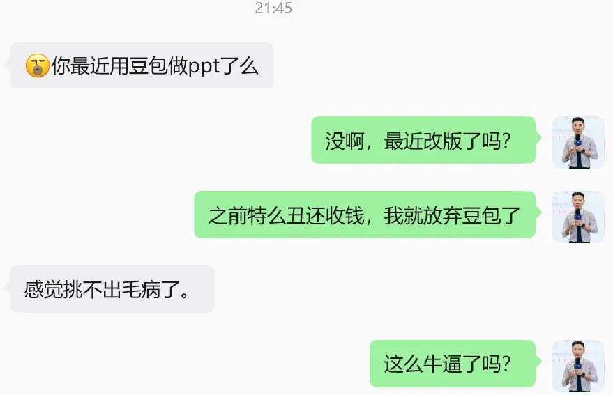 直到昨天晚上,老王跟我说:你最近用豆包做PPT了吗?