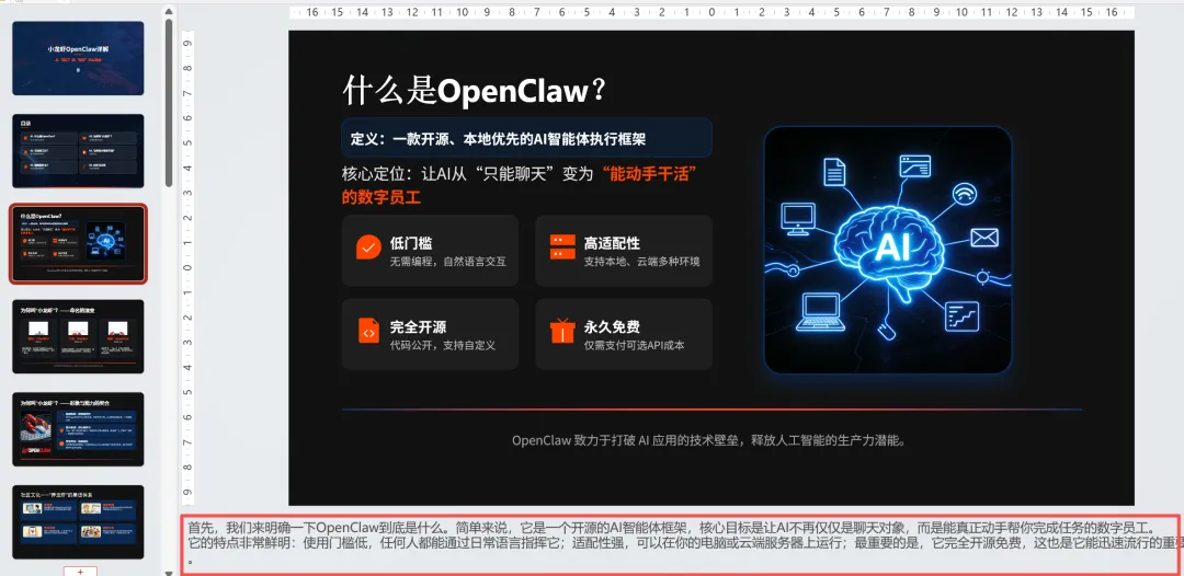 一边跟老王聊,一边这个PPT就做出来了,我除了提个一句不靠谱的要求,啥也没干。