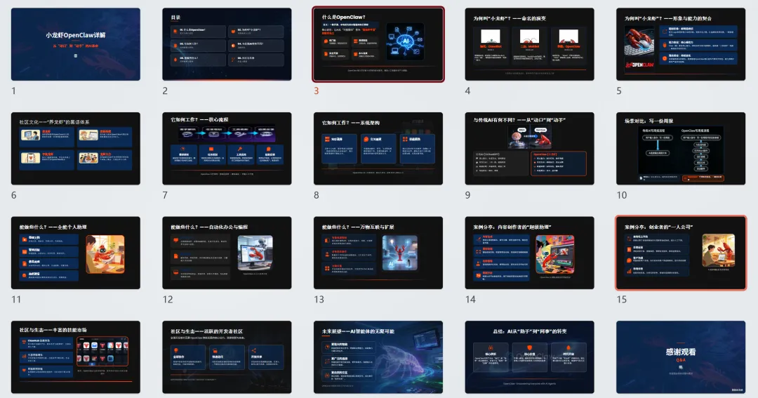 框架搭好了,素材收集完了,他就开始一页一页做PPT了。