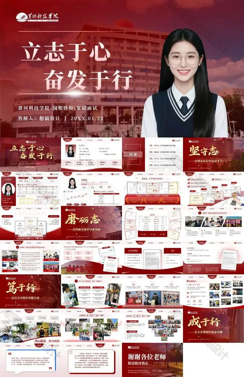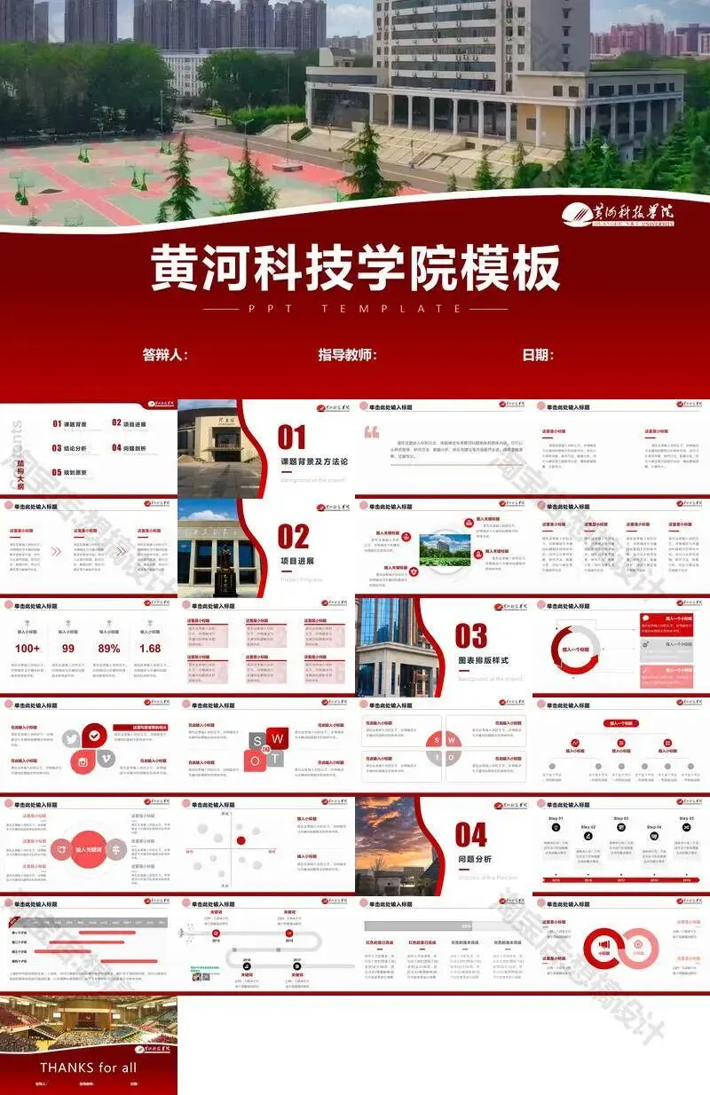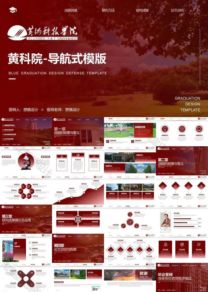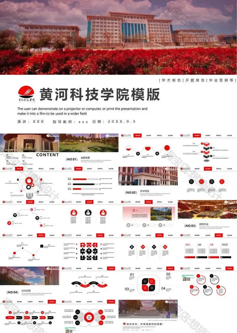 黄河科技学院毕业答辩PPT模板汇报幻灯片课件总结大学生作品