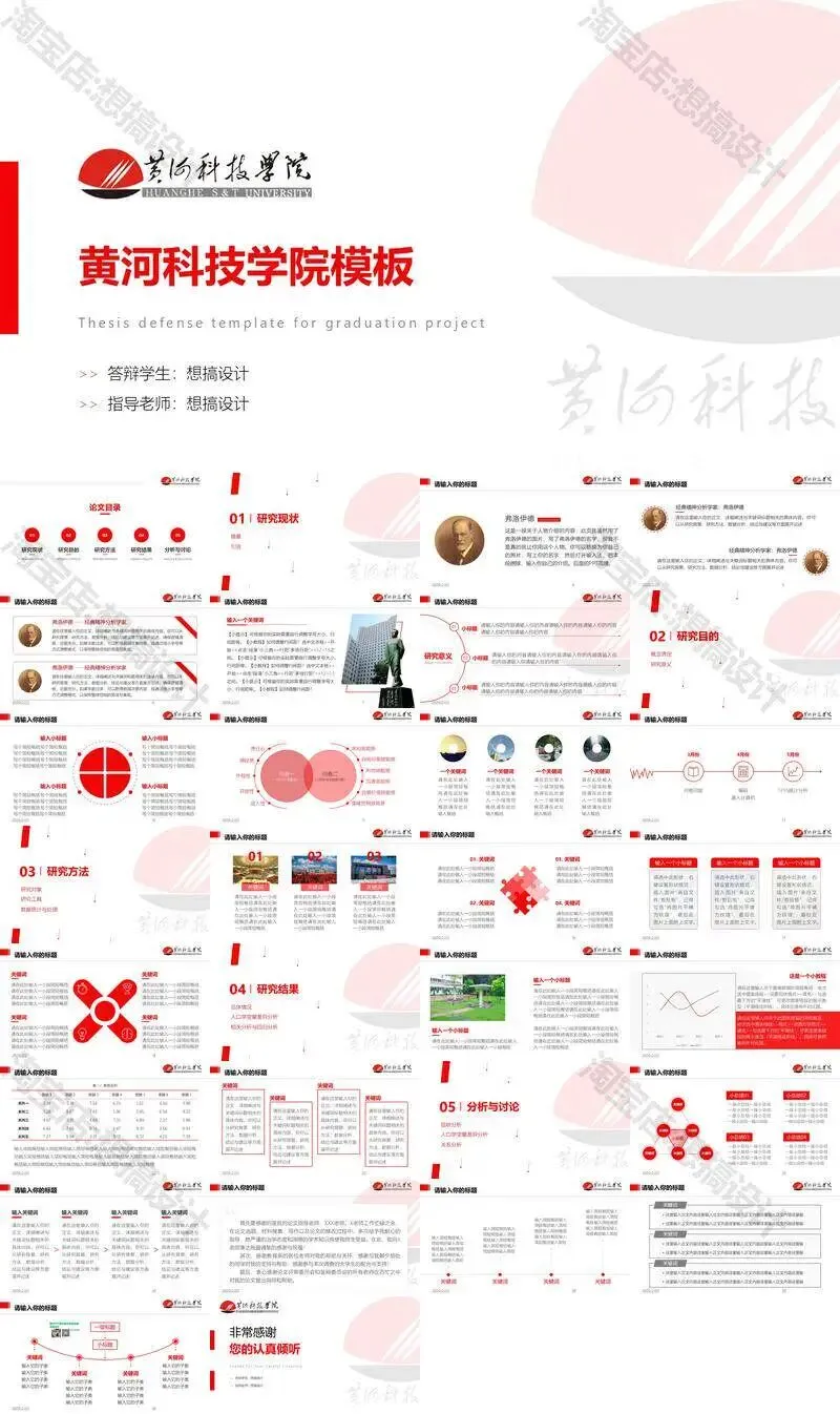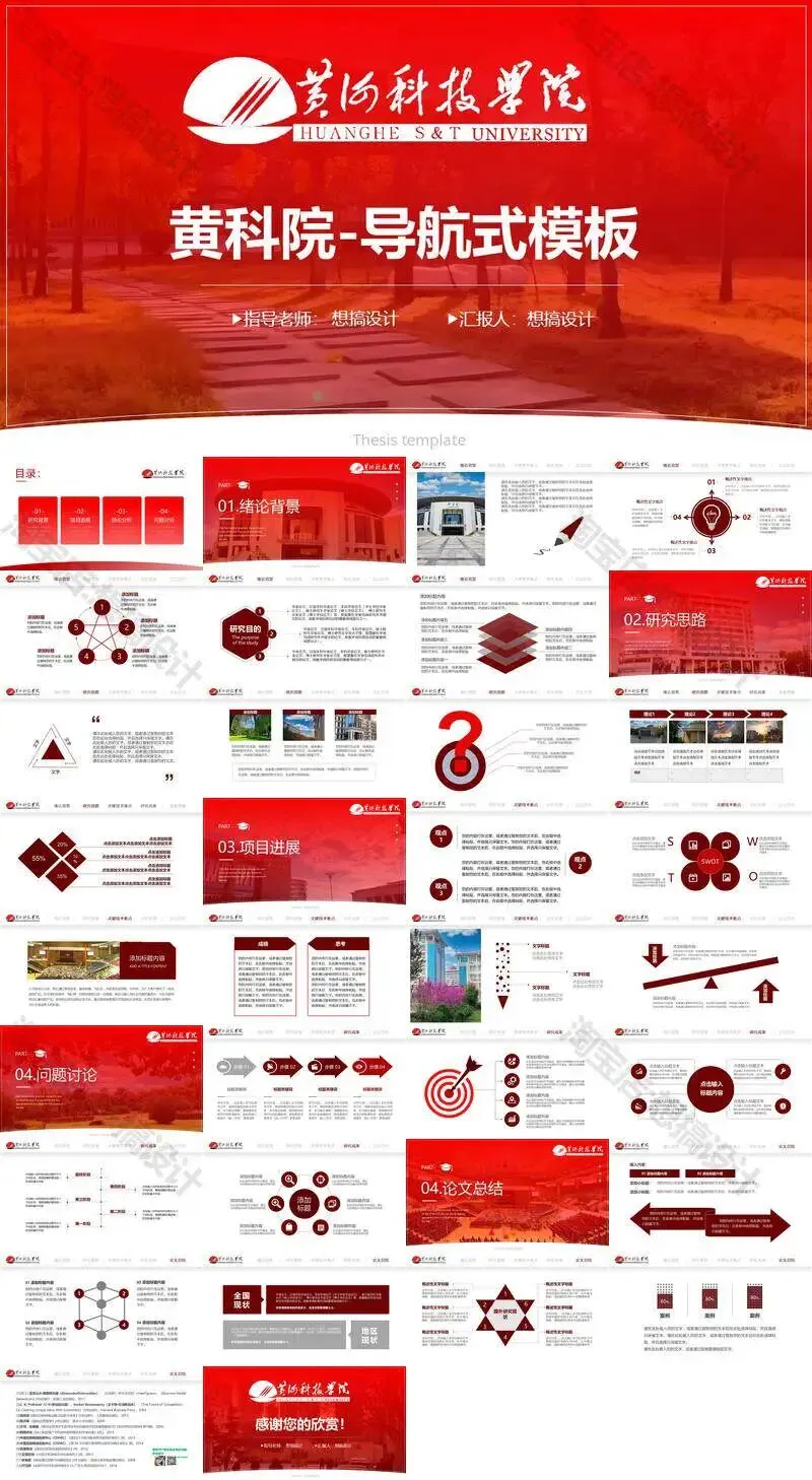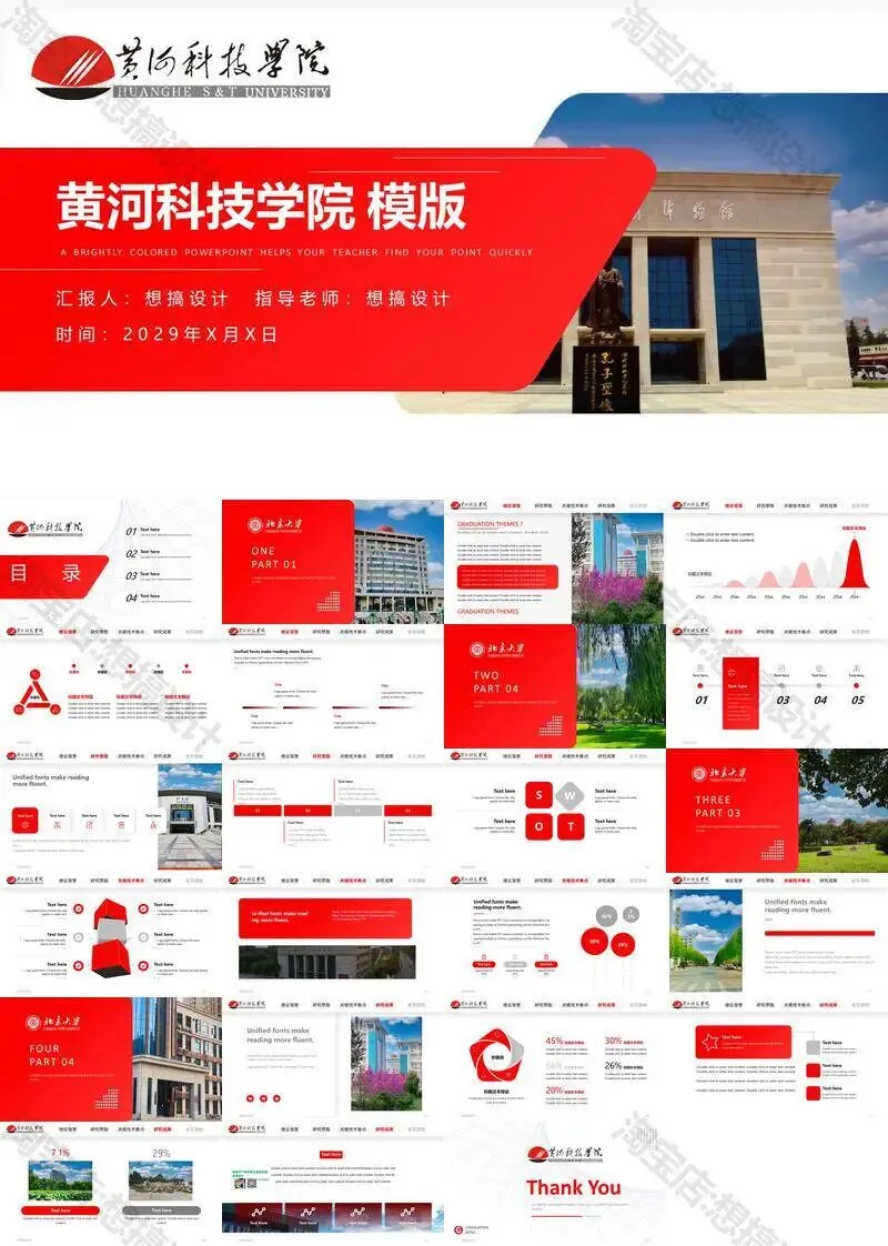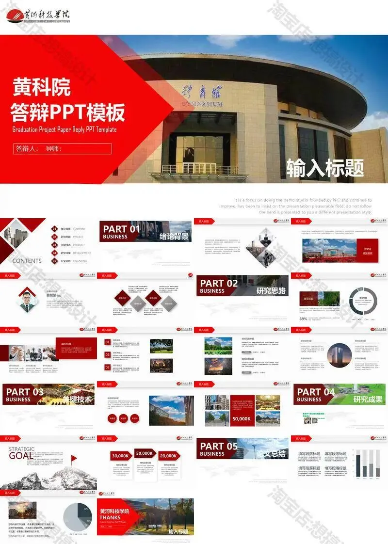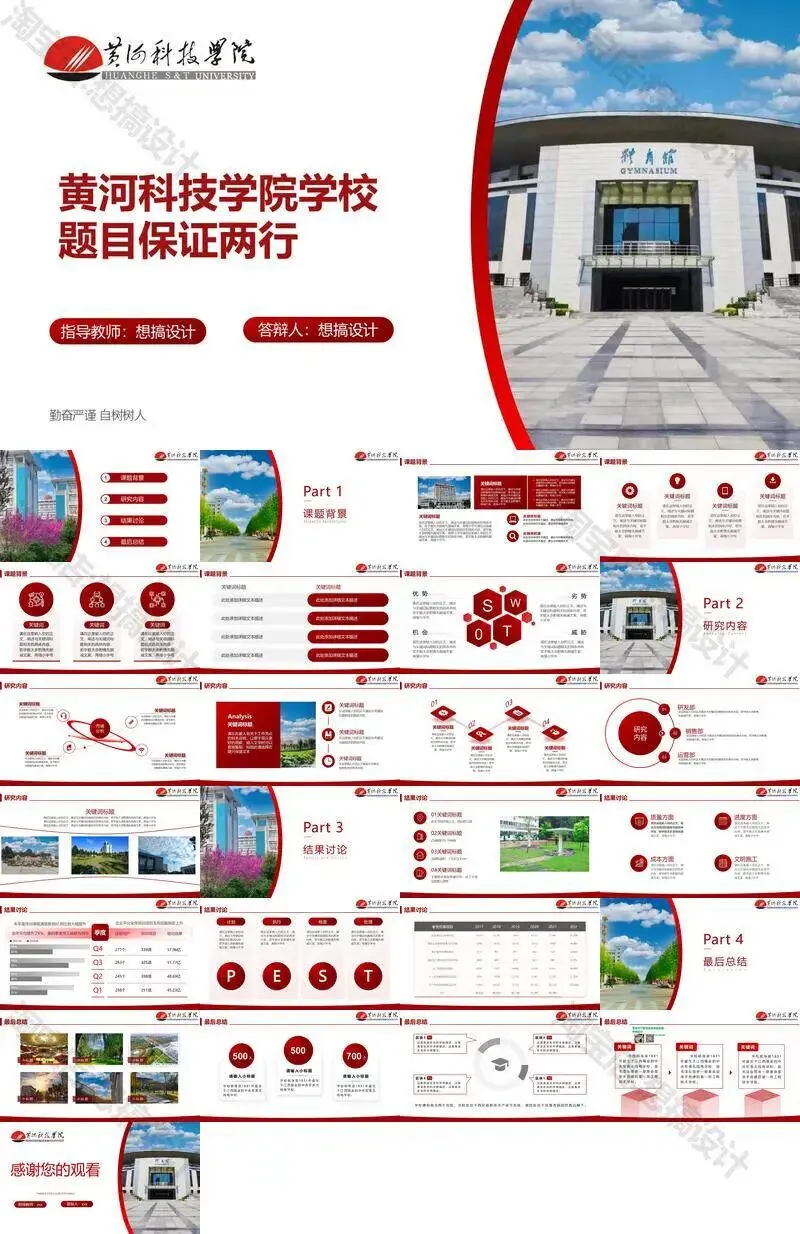 黄河科技学院毕业答辩PPT模板汇报幻灯片课件总结大学生作品