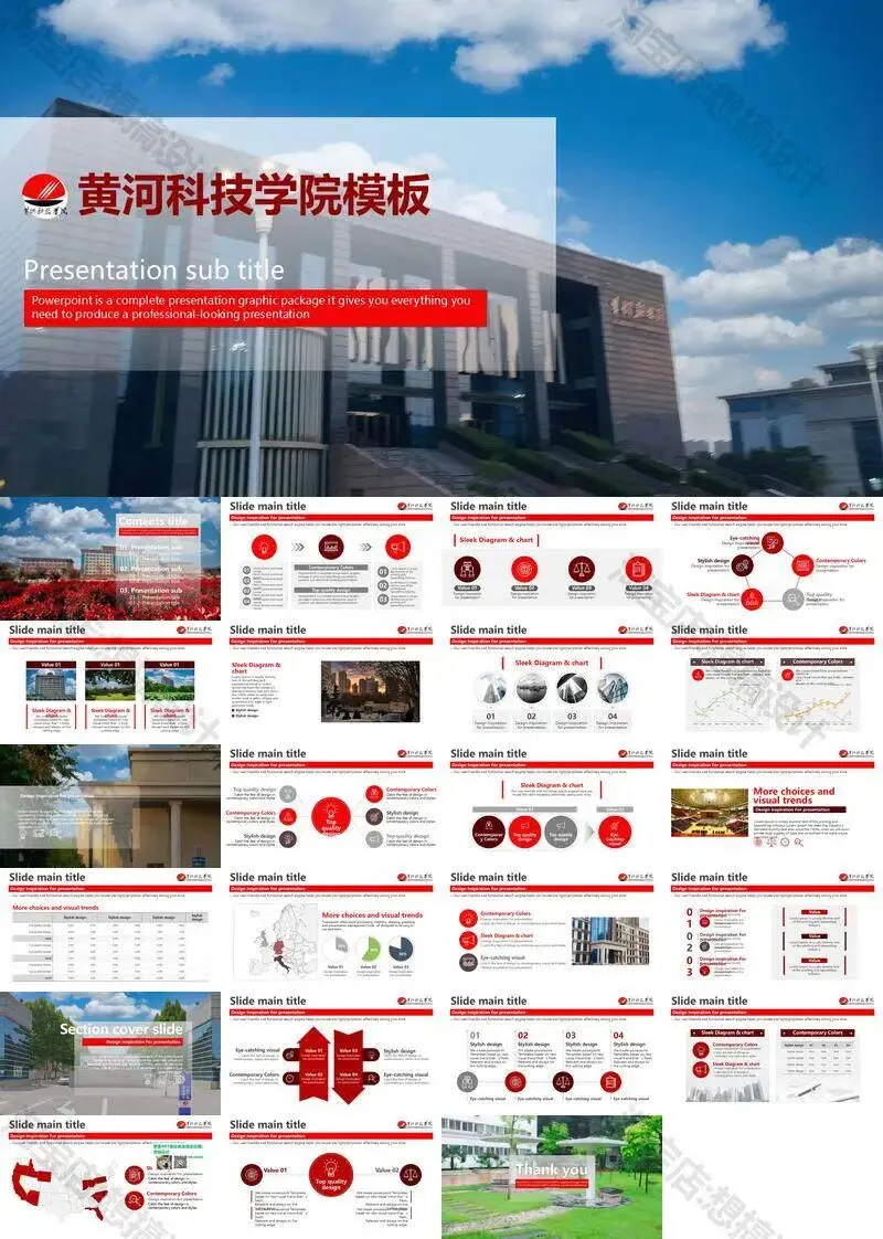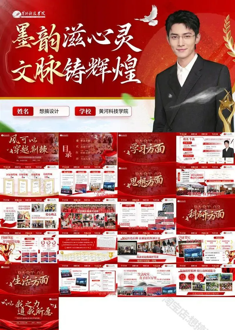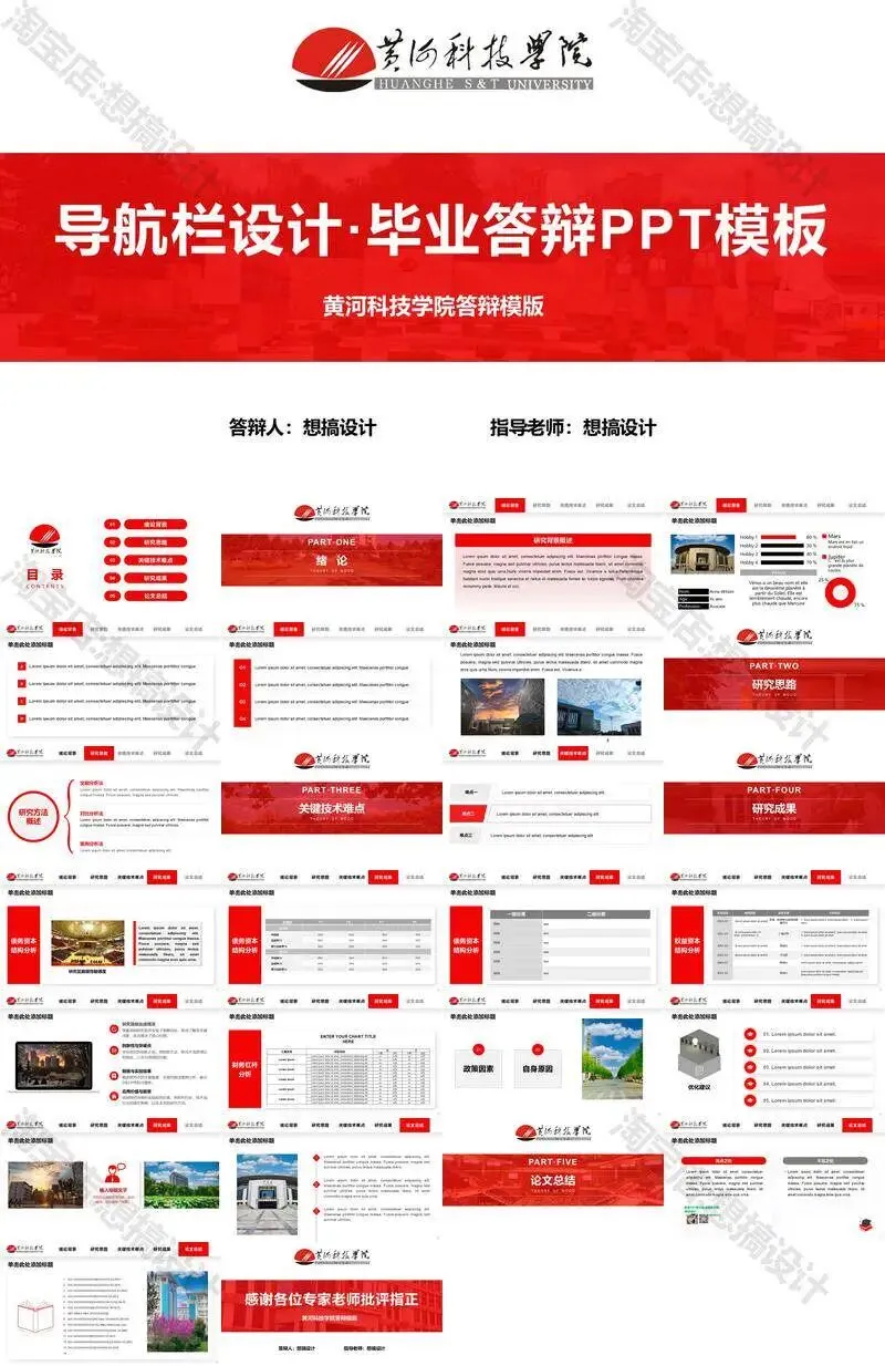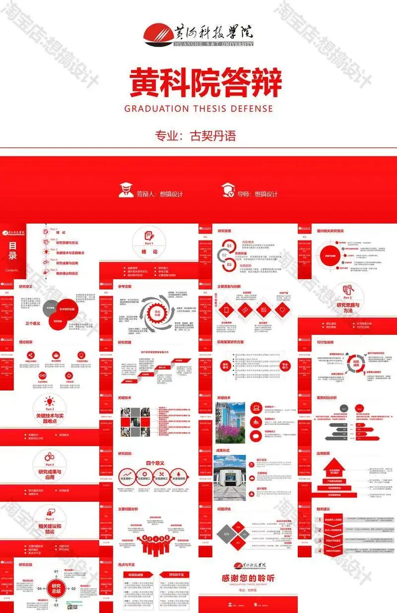 黄河科技学院毕业答辩PPT模板汇报幻灯片课件总结大学生作品